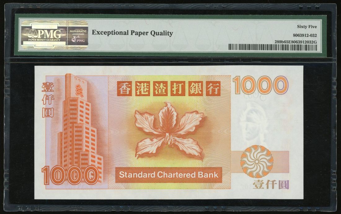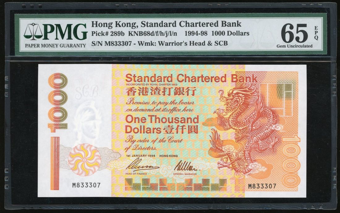 Standard Chartered Bank, Hong Kong, $1000, 1.1.1996, serial number M833307, (Pick 289b), PMG 65EPQ
