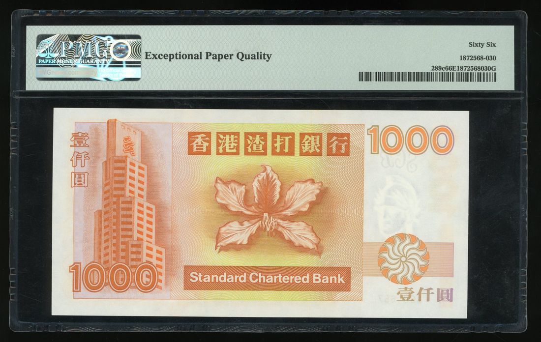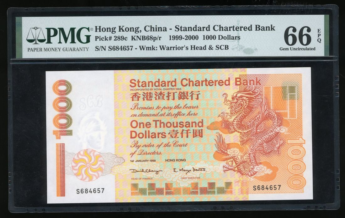 Standard Chartered Bank, Hong Kong, $1000, 1.1.1999, serial number S684657, (Pick 289c), PMG 66EPQ