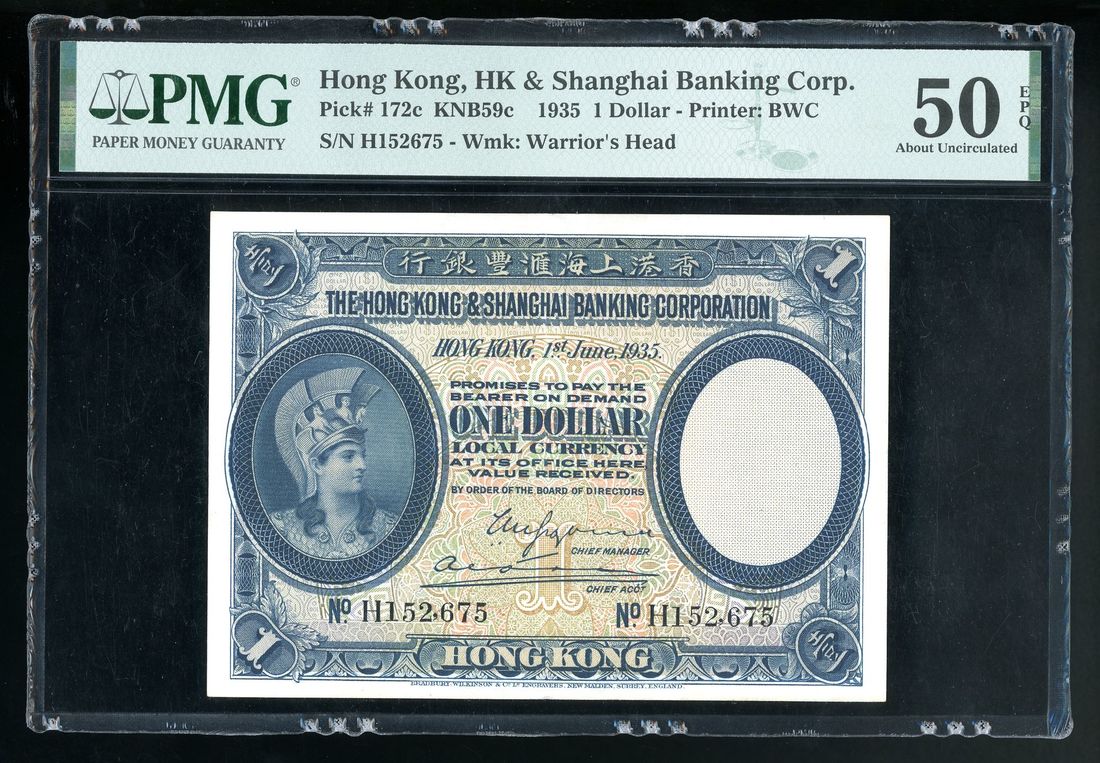 HongKong & Shanghai Banking Corporation, $1, 1.6.1935, serial number H152675, (Pick 172c), PMG 50EPQ