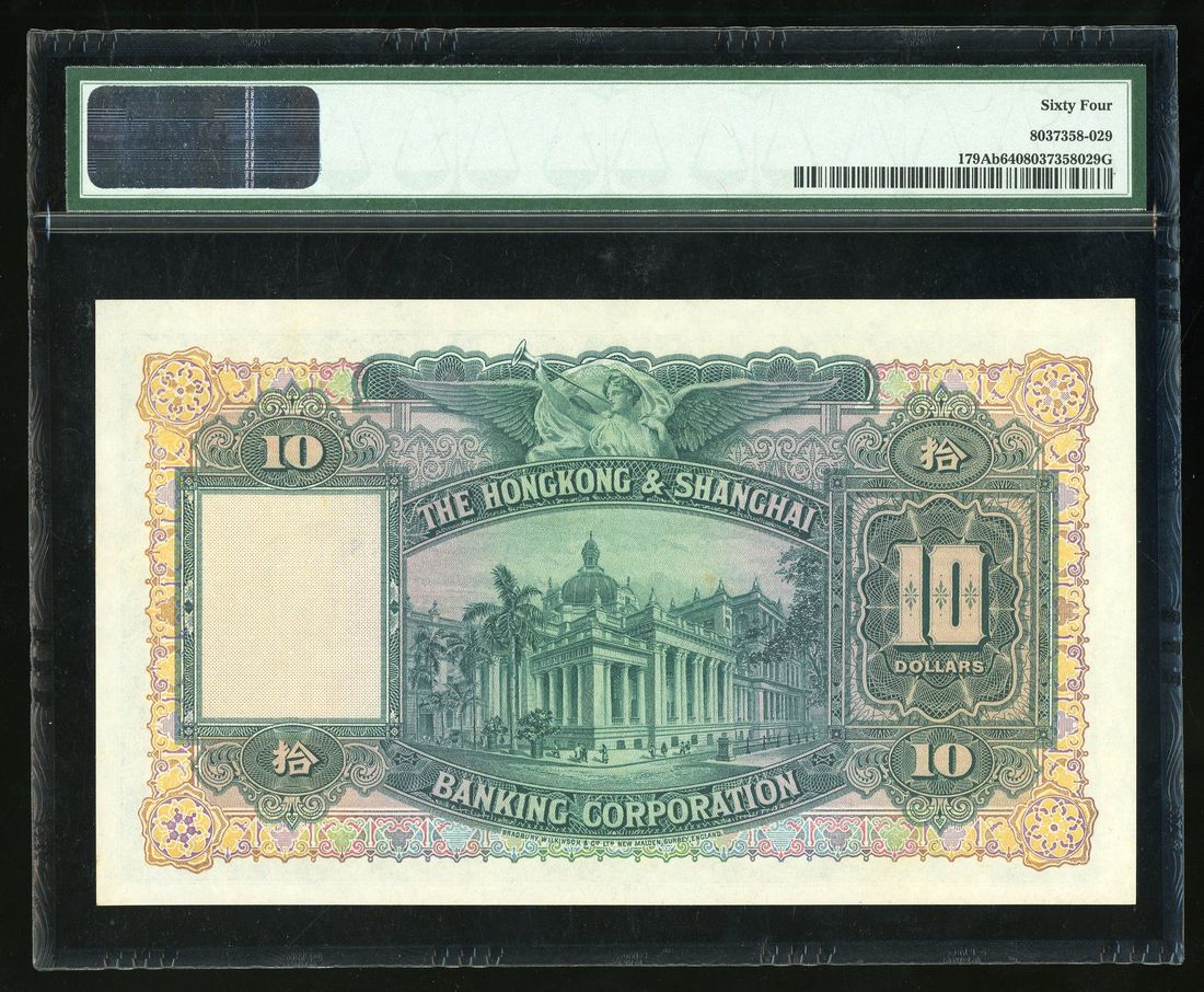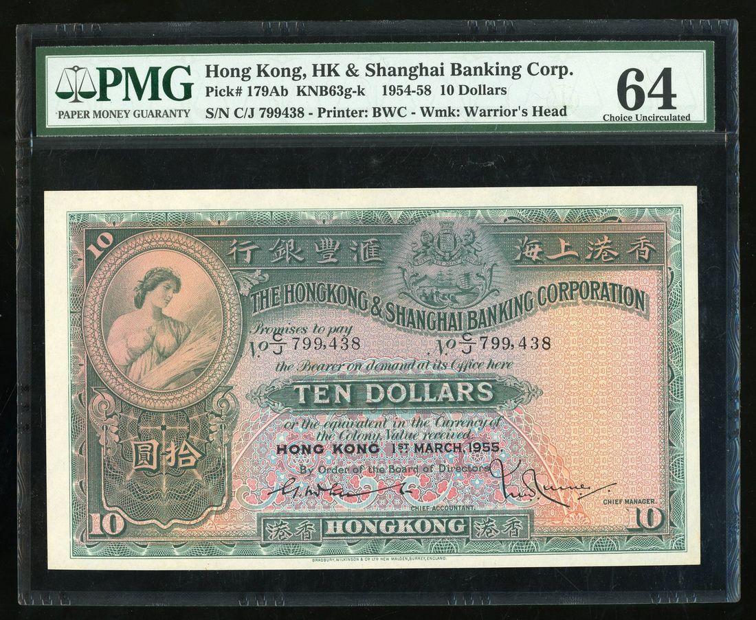 HongKong & Shanghai Banking Corporation, $10, 1.3.1955, serial number C/J 799438, (Pick 179Ab), PMG 64