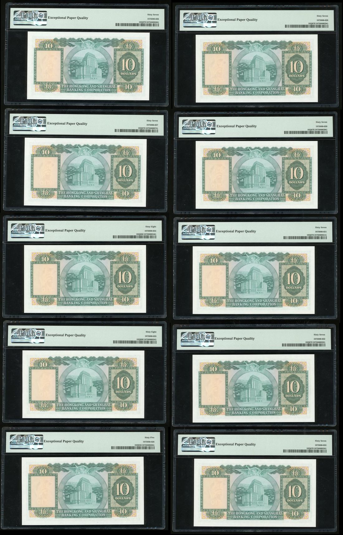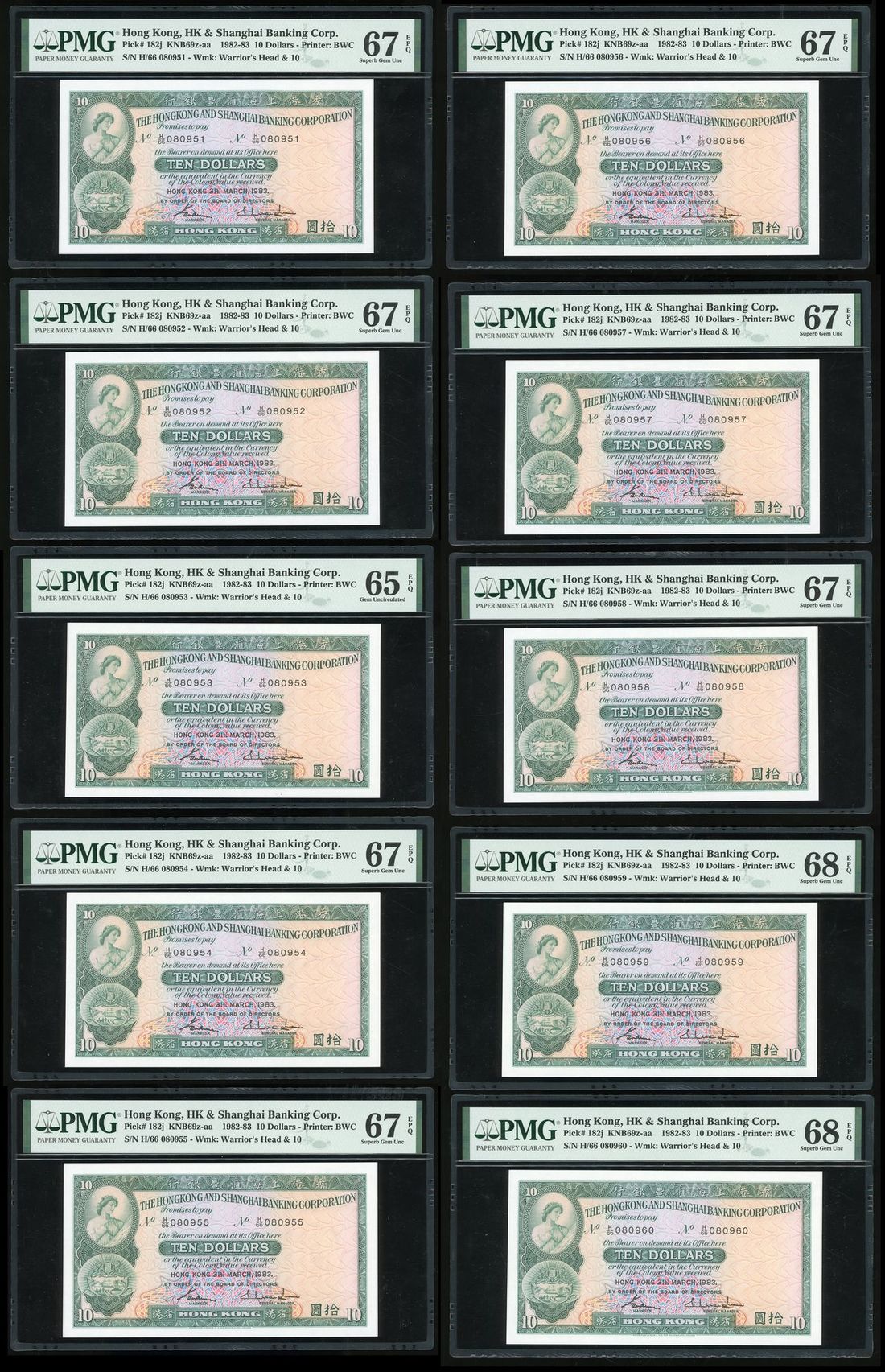 HongKong & Shanghai Banking Corporation, consecutive $10 (10), 31.3.1983, serial numbers H/66 080951-60 (Pick 182j), PMG 65-68EPQ (10)