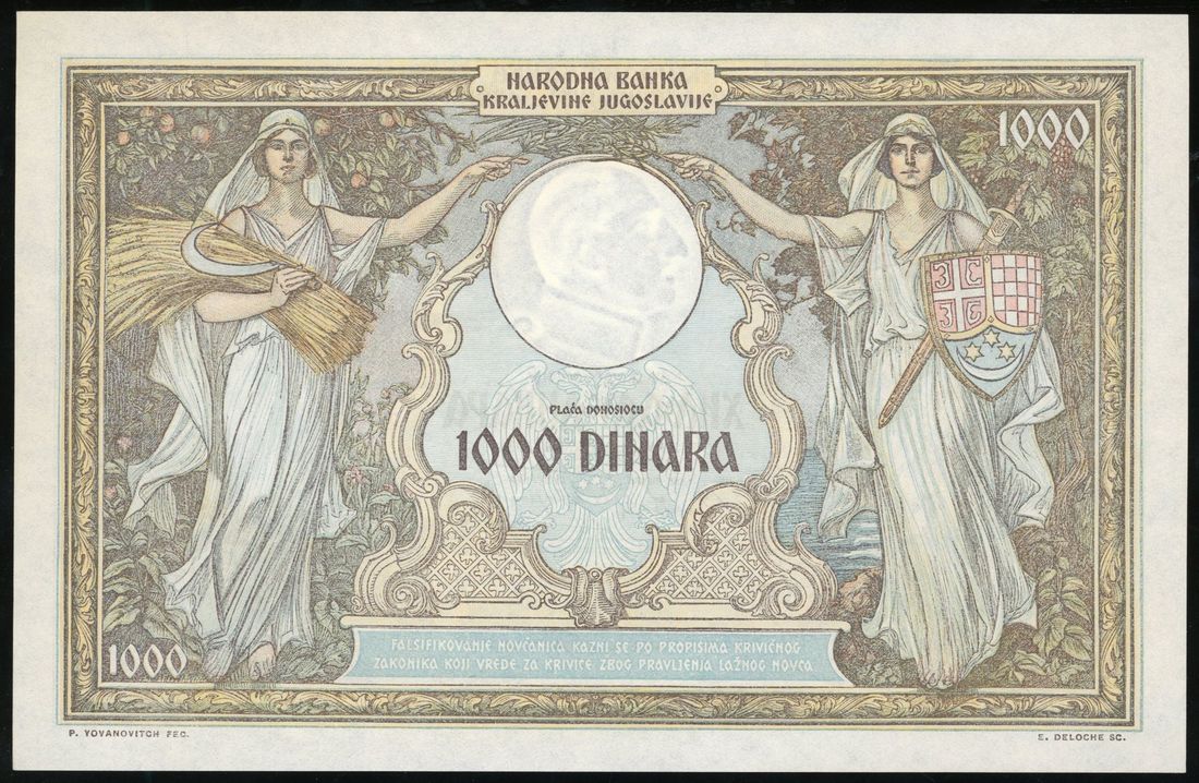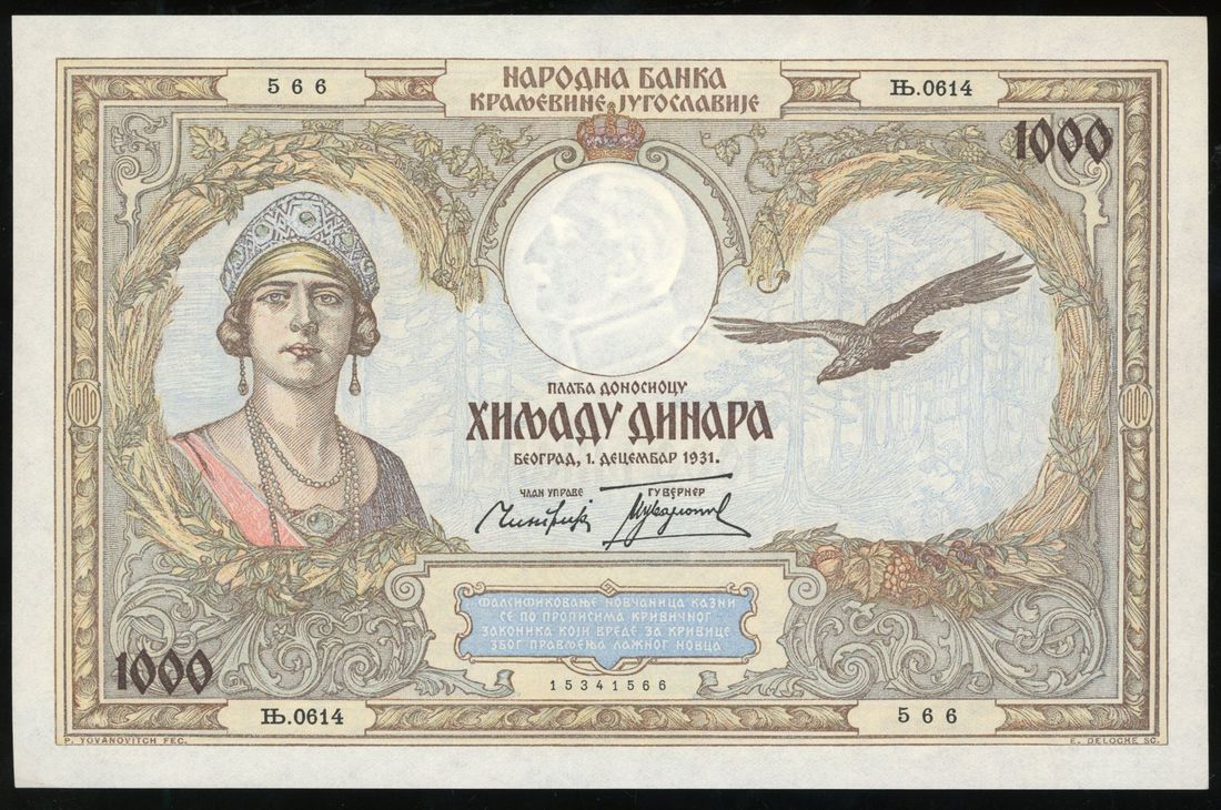 Narodna Banka Kraljevine Jugoslavije, Yugoslavia, 1000 dinara, 19313, serial number Nj 0614566, (Pick 29), Uncirculated
