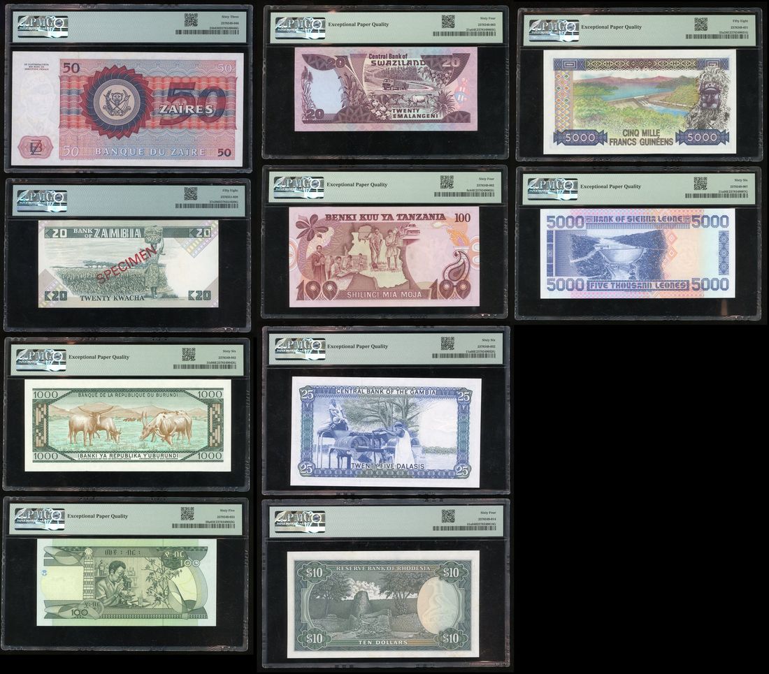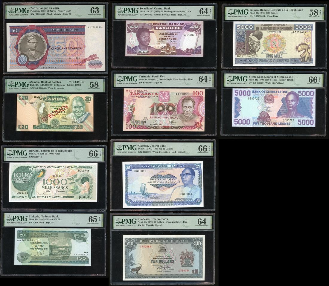 Africa Banknotes, a group of 10x, including, -Burundi, 1000 francs, 1989, PMG 66EPQ,
