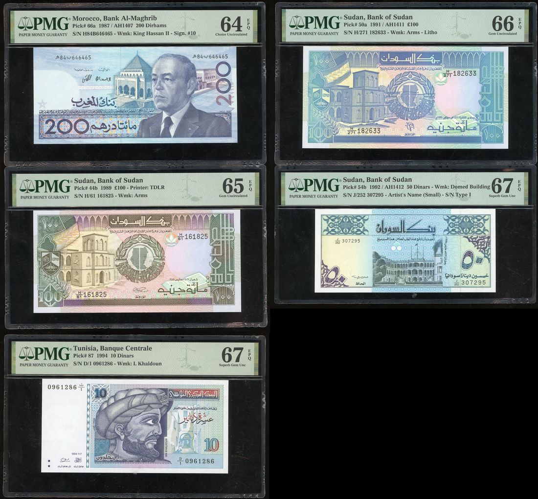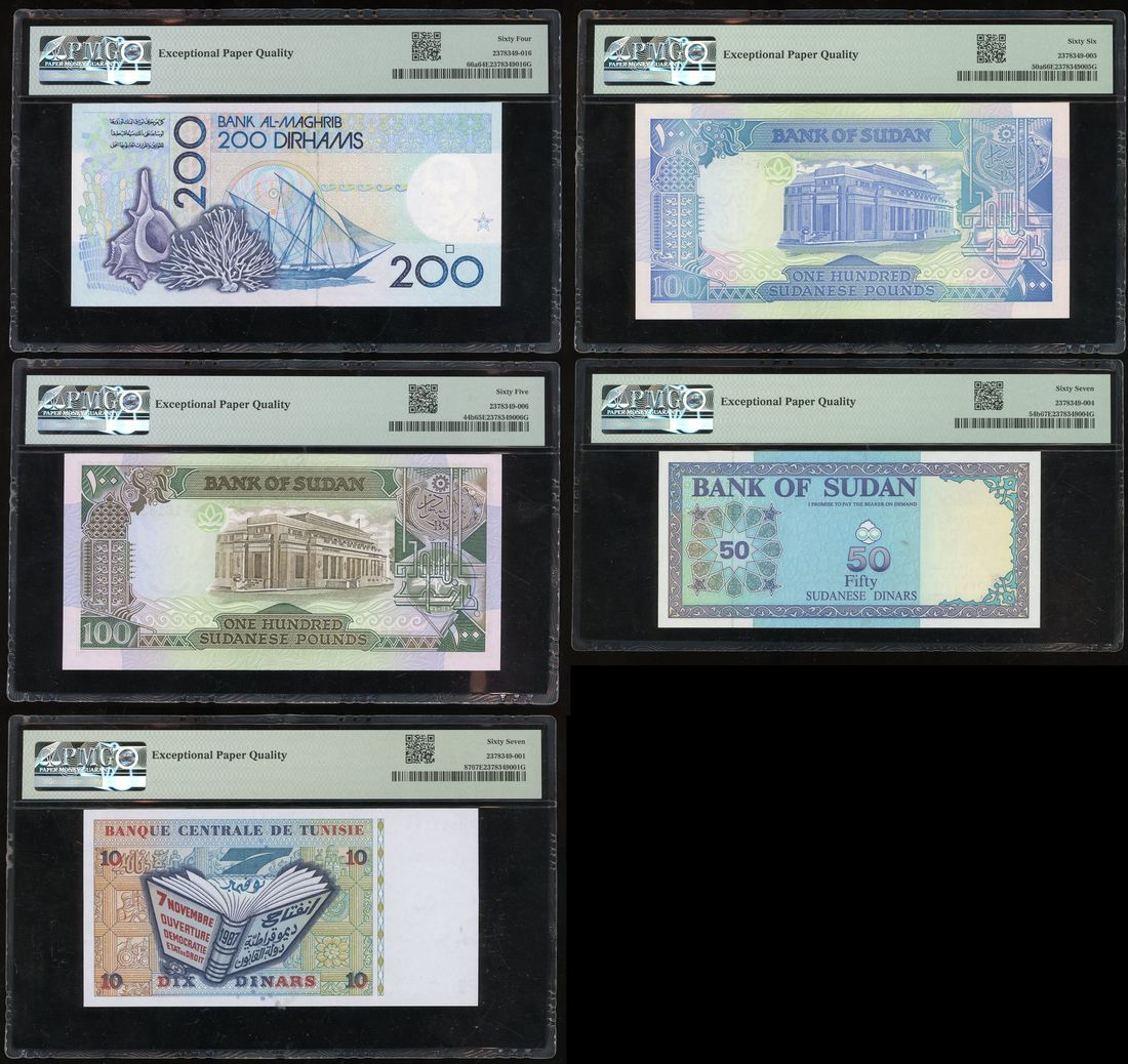 North Africa Banknotes, a group of 5x, including, -Morocco, 200 dirhams, 1987, PMG 64EPQ,