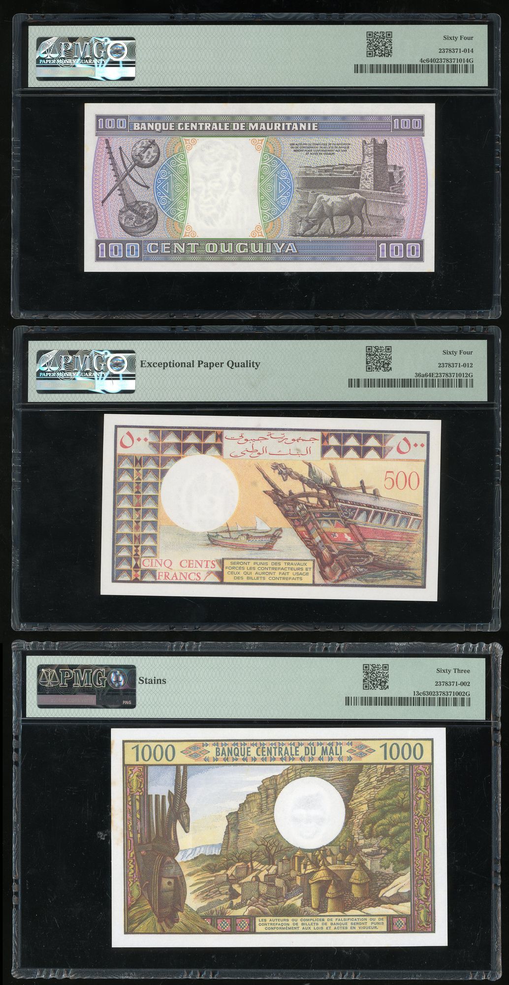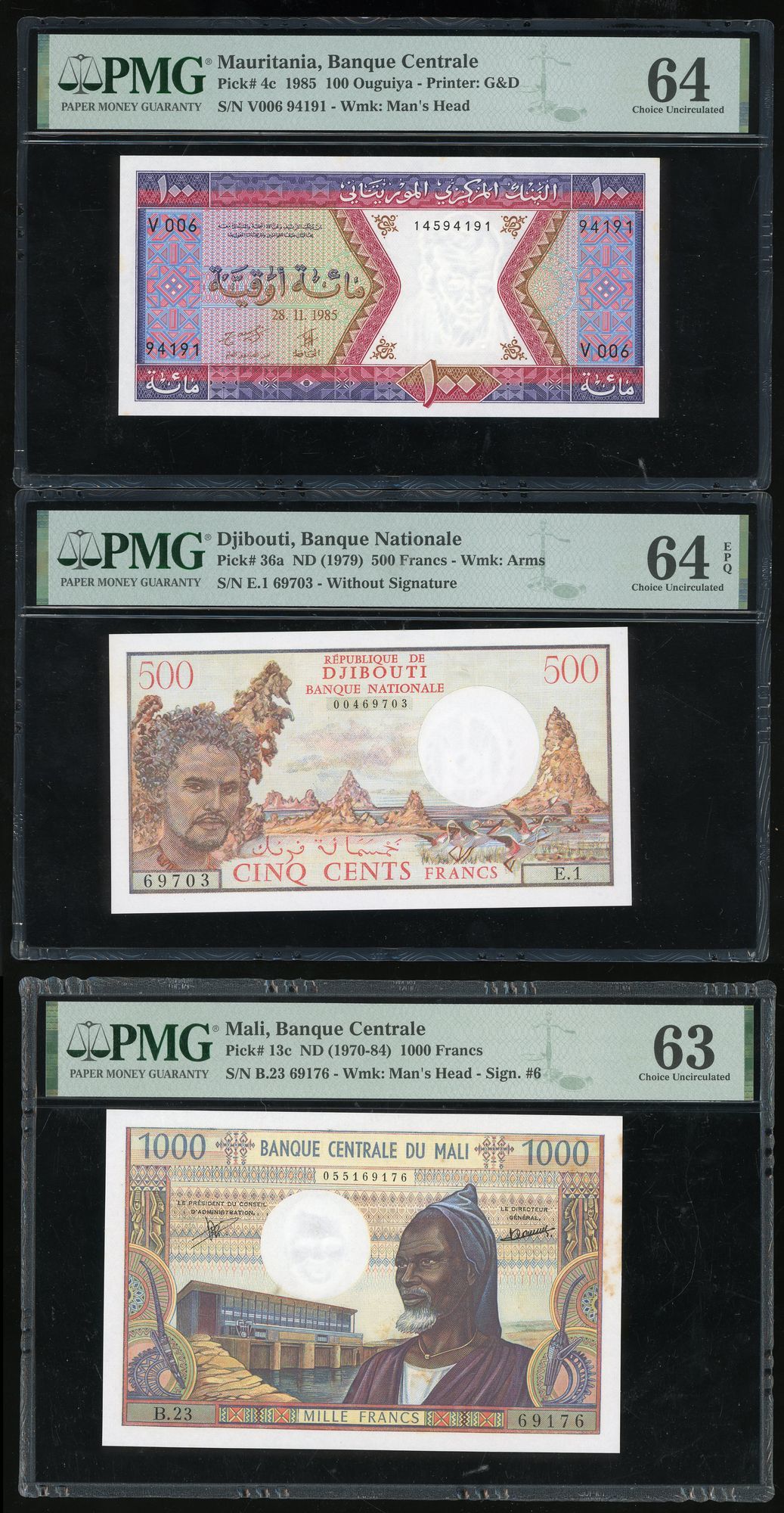Africa Banknotes, a group of 3x, including, -Djibouti, 500 francs, ND (1979), serial number E.1 69703, PMG 64EPQ,