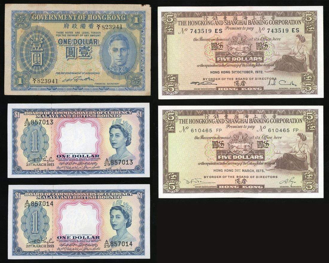 World Banknotes, a group of 5x, including, - 2x Malaya and British Borneo $1, 1953, Extremely Fine
