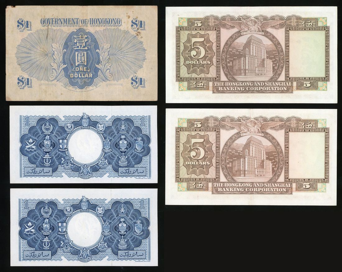 - 1x Hongkong Government $1, ND (1940-41), Very Fine, Stains, Right corner damaged