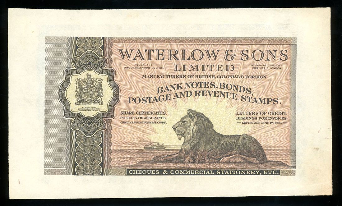 Waterlow and Sons Limited, advertising note, ND, engraved,