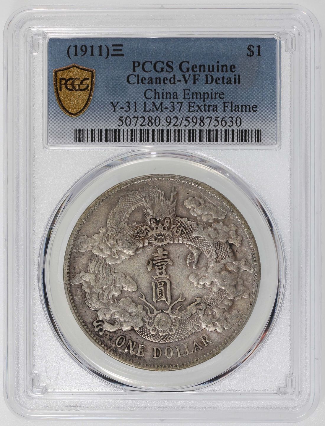 China, Qing Dynasty, Empire, [PCGS VF Detail] silver dollar, 3rd Year of Xuantong (1911), extra flame variety, (Y-31, LM-37),