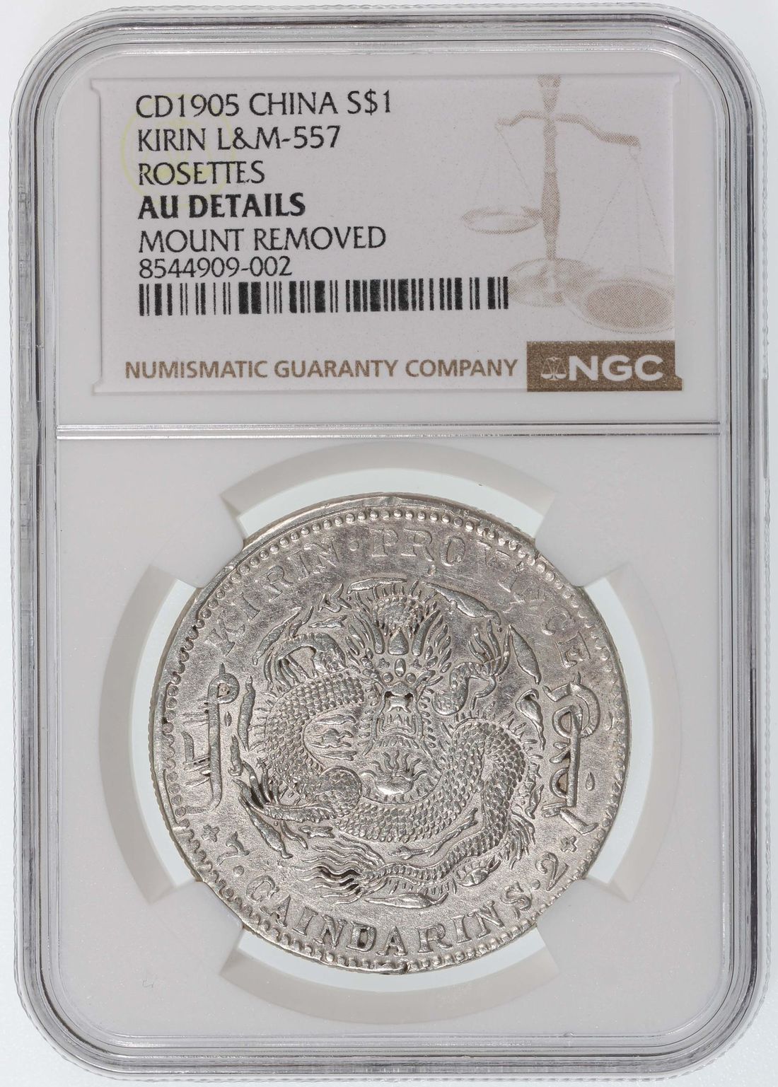China, Qing Dynasty, Kirin Province, [NGC AU Details] silver dollar, Yi Si Year (1905), (LM-557), mount removed. #8544909-002.