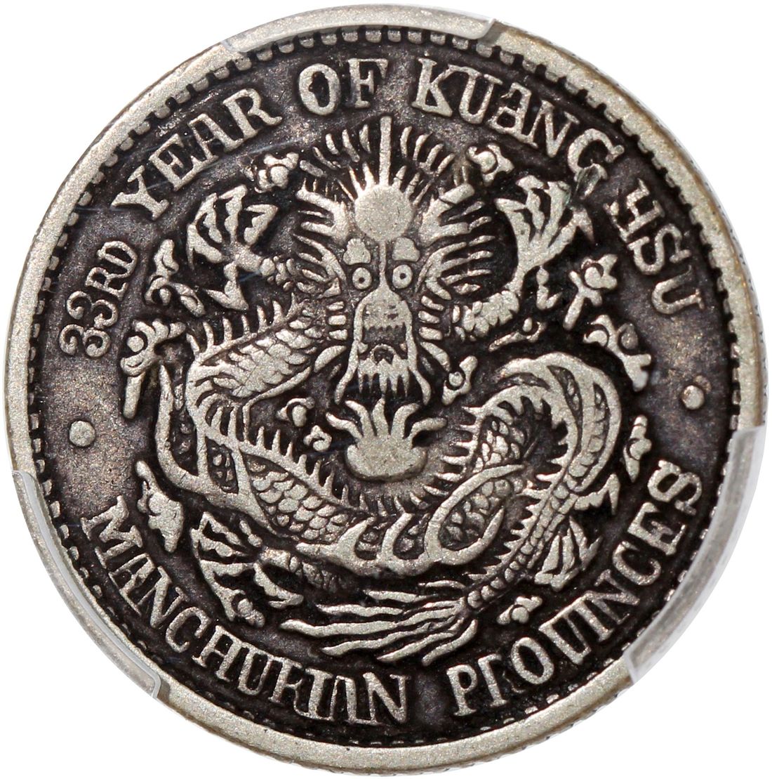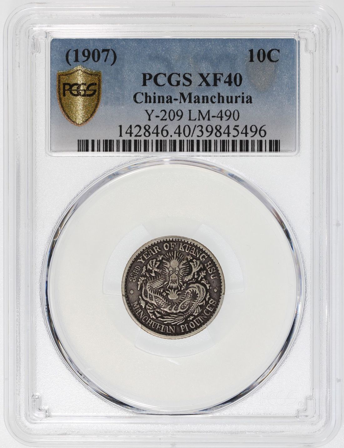 China, Qing Dynasty, Manchurian Provinces, [PCGS XF40] silver 10 cents, Guangxu Yuan Bao, 33rd Year of Guang Xu (1907), (LM-490), dark toned. Cert.# 39845496