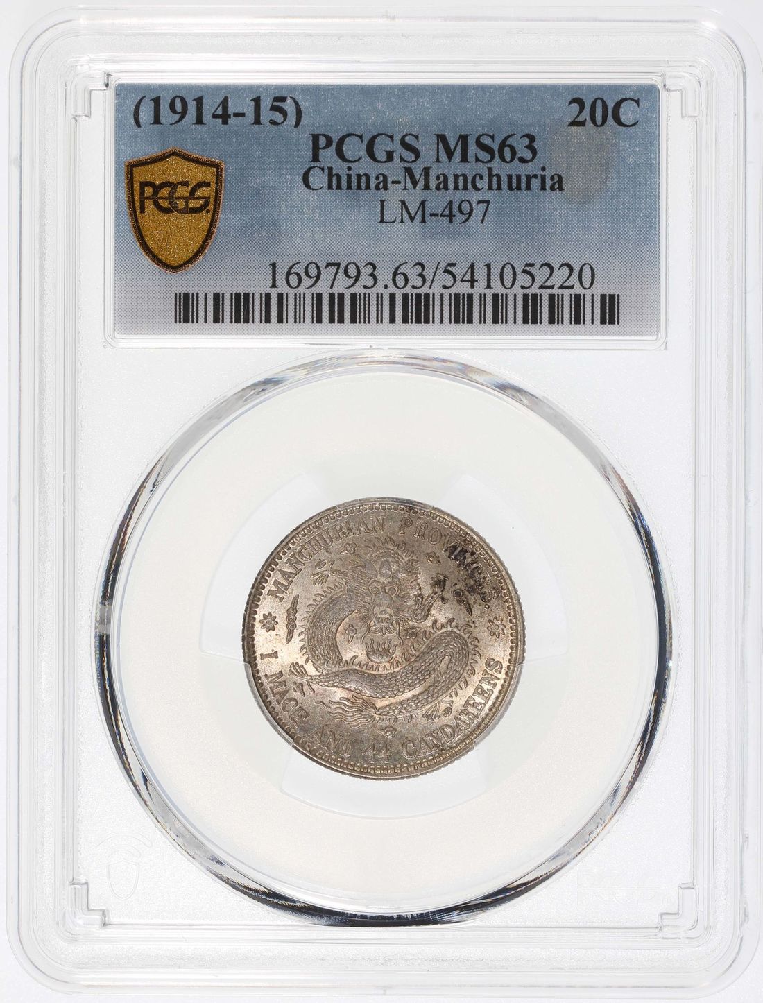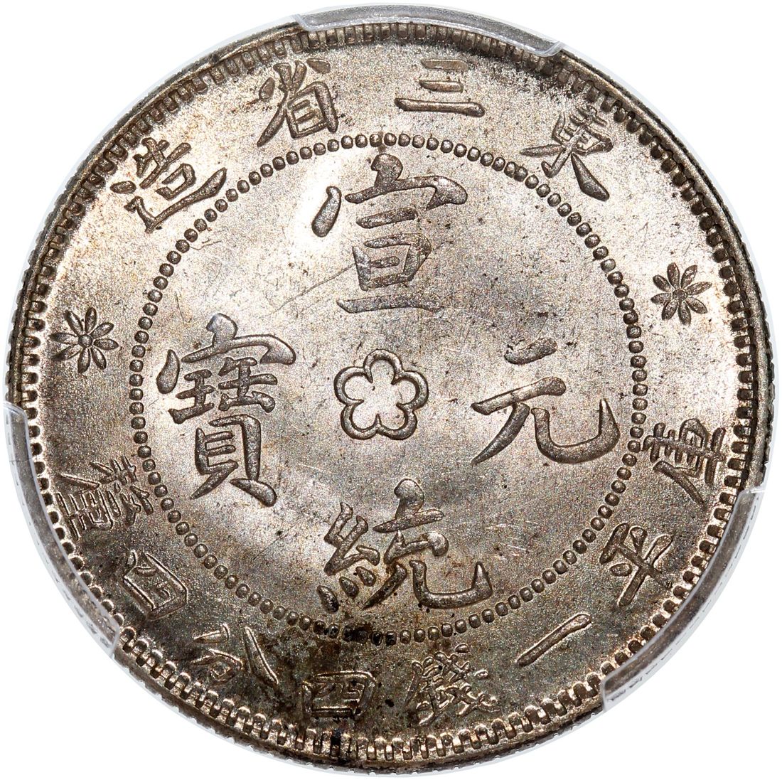 China, Qing Dynasty, Manchurian Provinces, [PCGS MS63] silver 20 cents, ND (1914-1915), 'Xuan Tong Yuan Bao', rosette at centre without dot variety, (LM-497, K-264, KM-Y-213a.3), Cert. #54105220, subtly toned in pink
