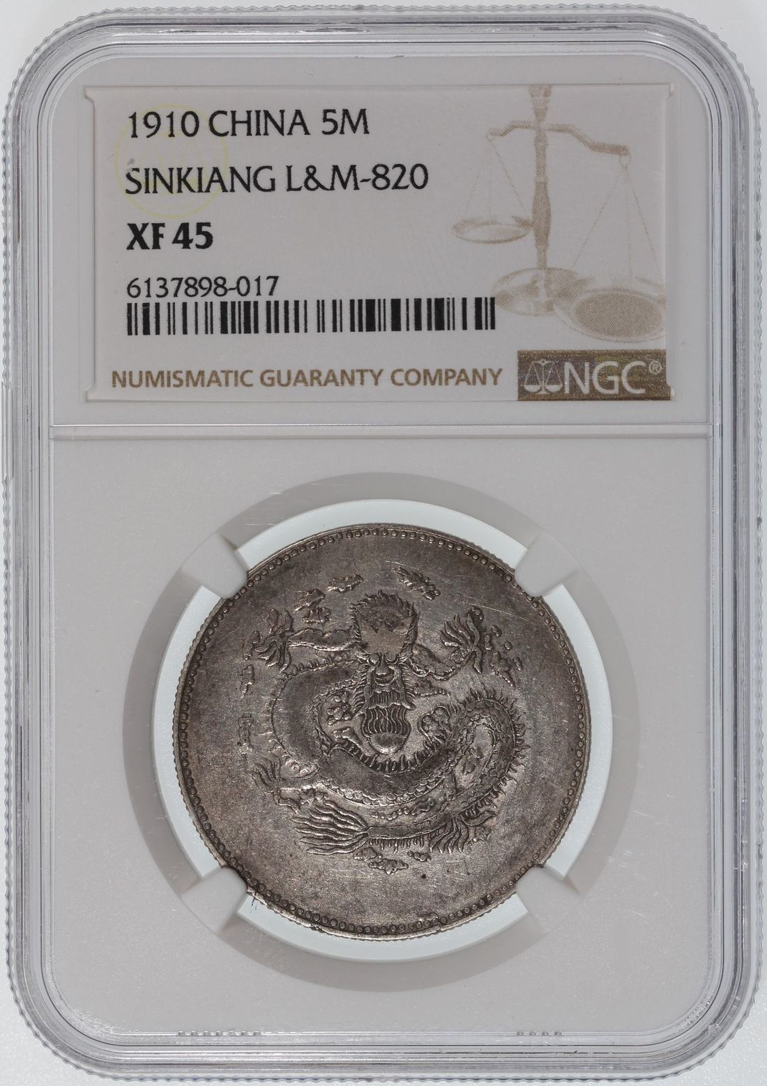 China, Qing Dynasty, Sinkiang Province, [NGC XF45] silver 5 mace, 1910, Xiangyin Wu Qian, (LM-820), Cert.# 6137898-017