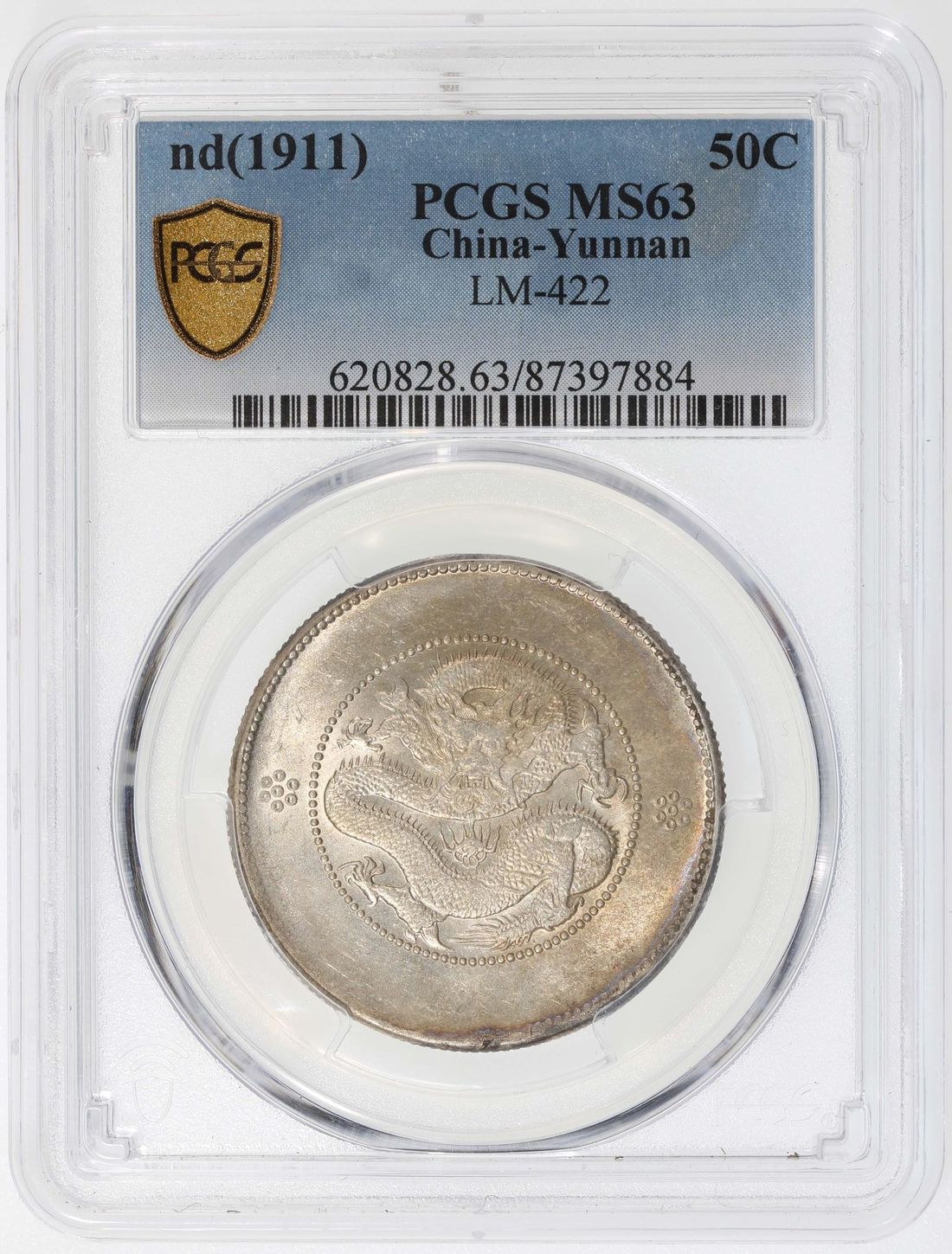 China, Qing Dynasty, Yunnan Province, [PCGS MS63] silver 50 cents, ND (1911), 'Guangxu Yuan Bao', new dragon type, (LM-422),