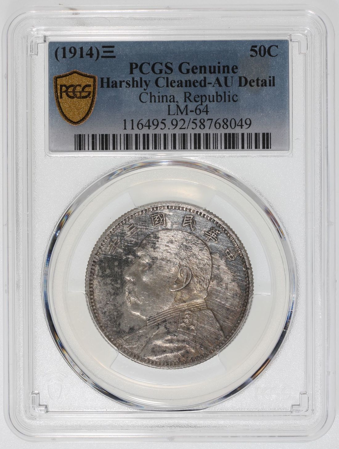 China, Republic, [PCGS AU Detail] silver 50 cents, Year 3 (1914), (LM-64), harhly cleaned. #58768049