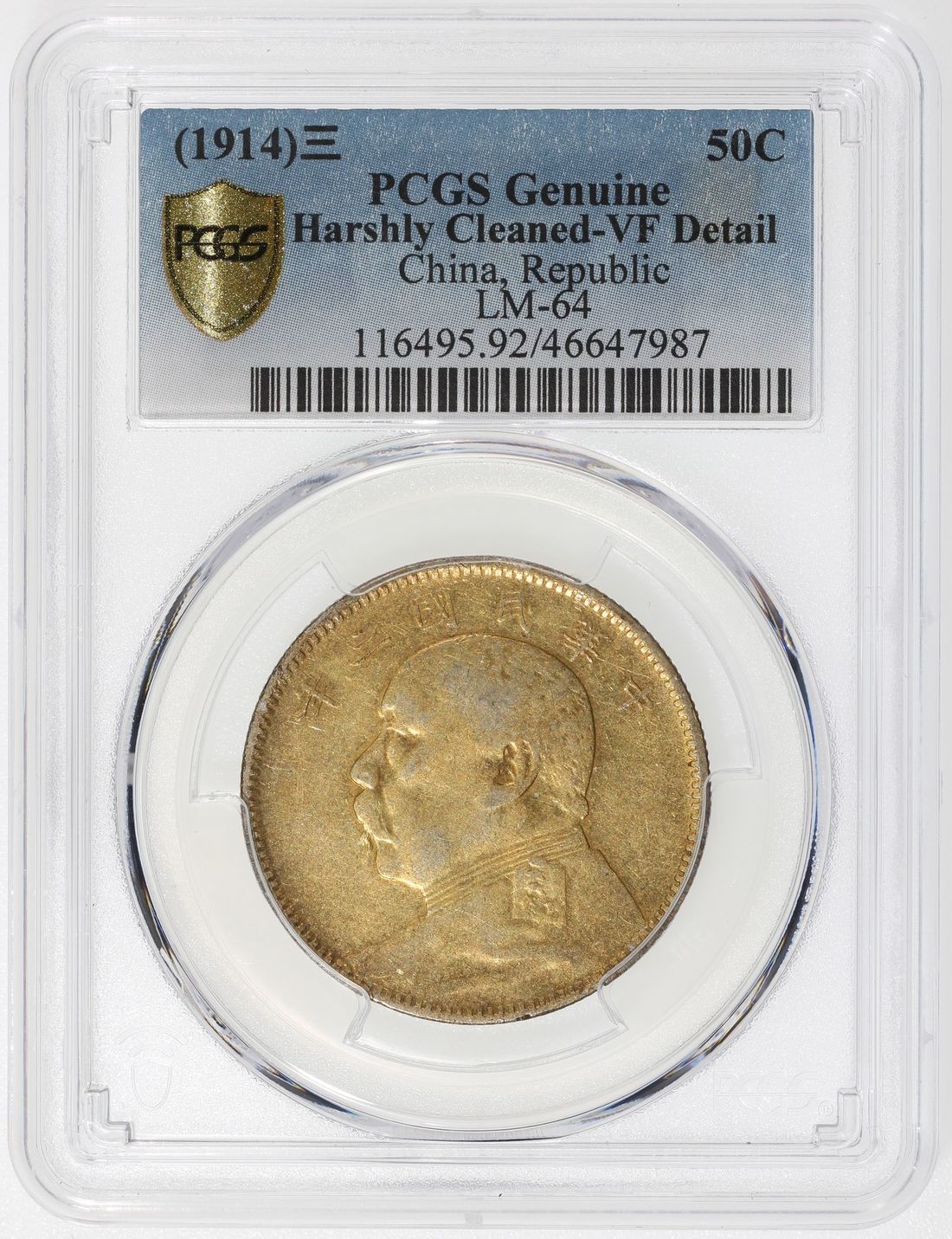 China, Republic, [PCGS VF Detail] silver 50 cents, Year 3(1914), 'Yuan Shih Kai' on obverse, (LM-64), yellowish toning, harshly cleaned. Cert.# 46647987