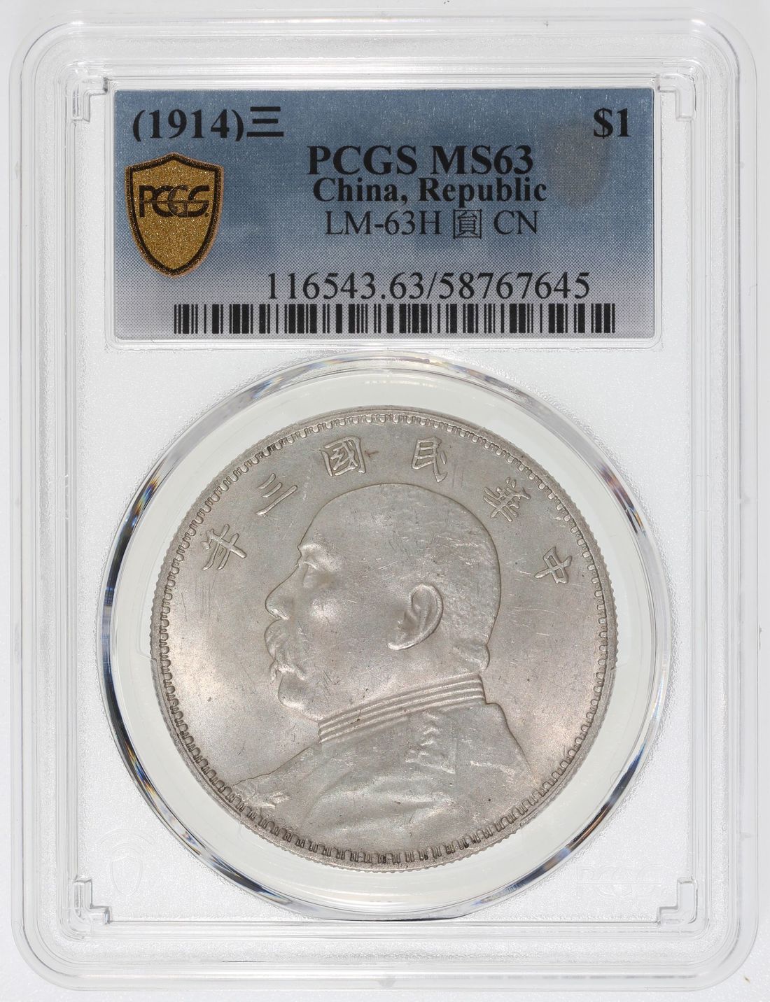 China, Republic, [PCGS MS63] silver dollar, Year 3(1914), 'Yuan Shih Kai' (LM-63H), with mint luster. Cert.# 58767645