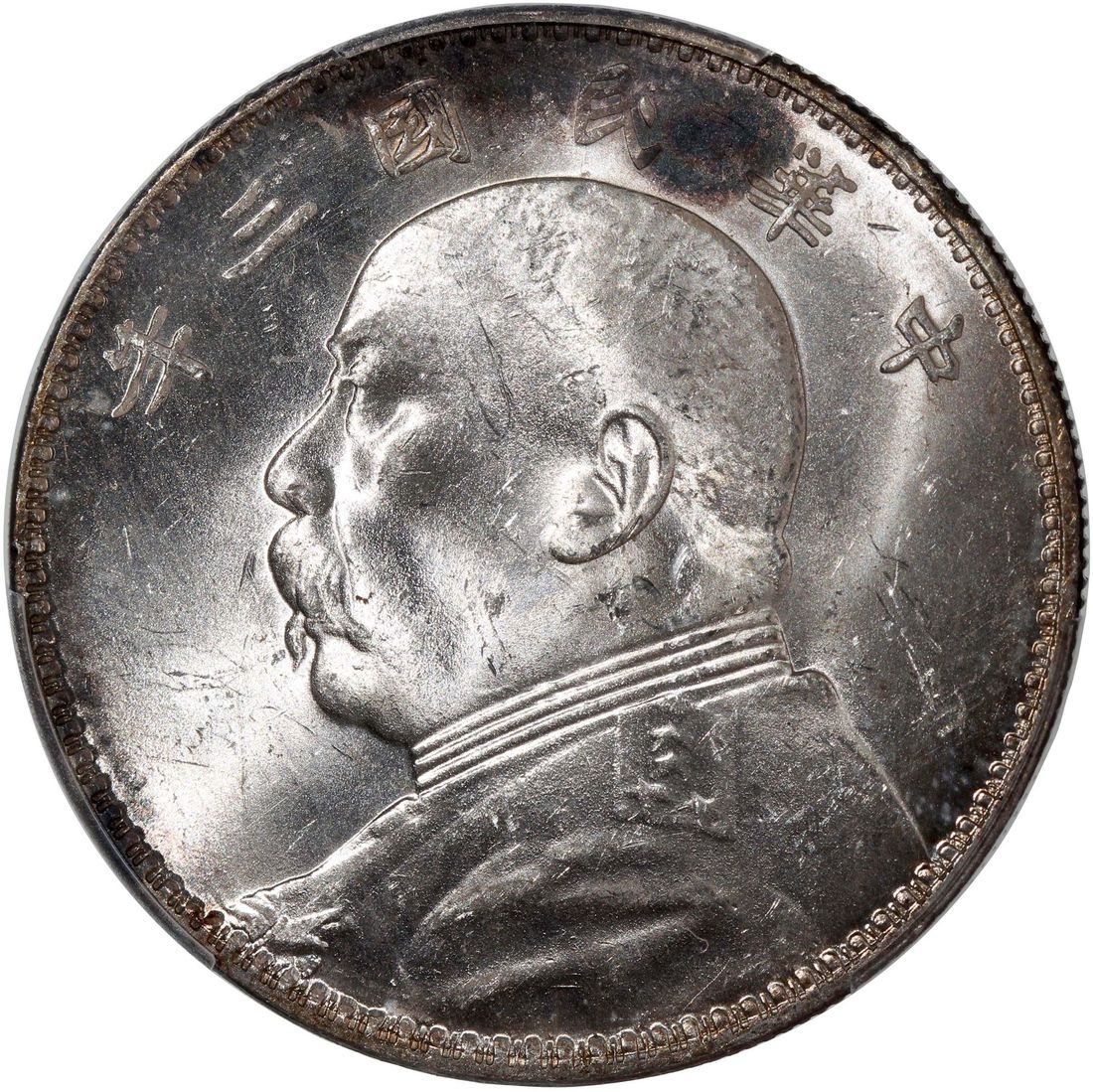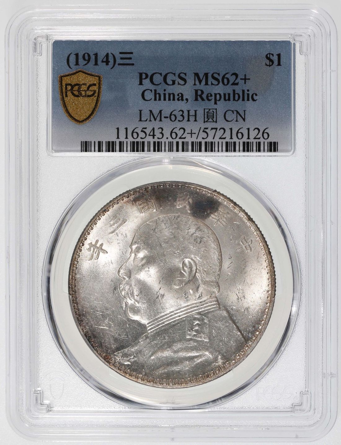 China, Republic, [PCGS MS62+] silver dollar, Year 3 (1914), 'Yuan Shih Kai' triangle 'Yuan' on reverse, (LM-63H), Cert. #57216126