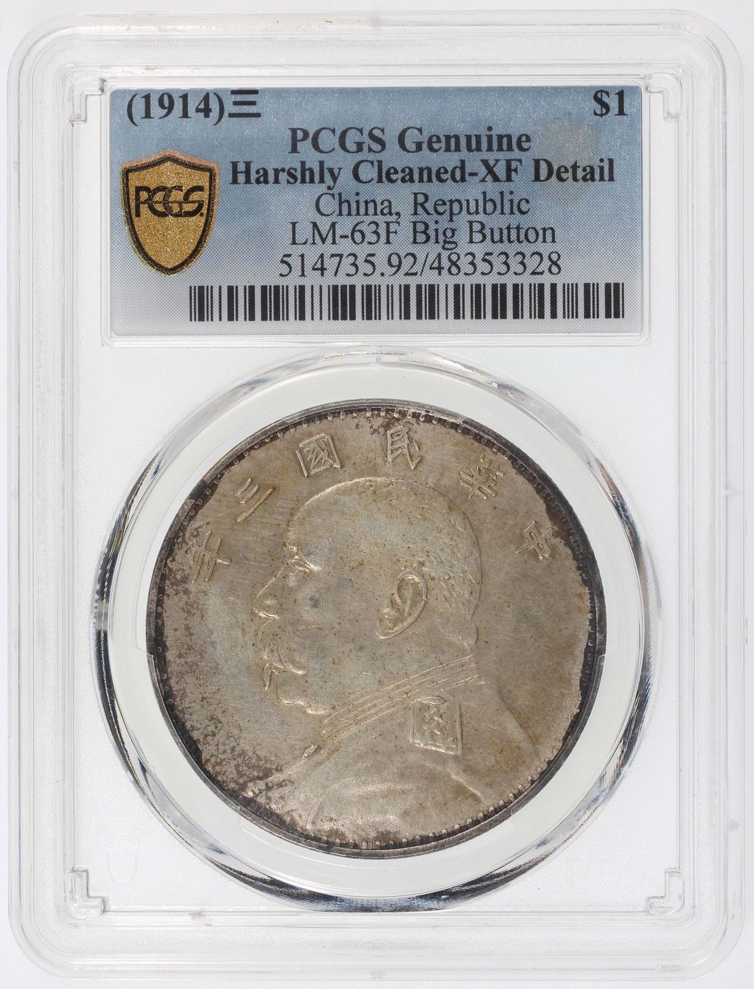 China, Republic, [PCGS XF Detail] silver dollar, Year 3(1914), 'Yuan Shih Kai' big button, (LM-63F), harshly cleaned. Cert. 48353328