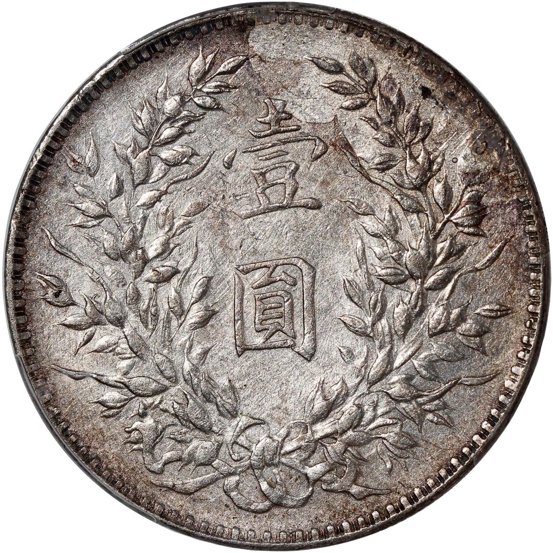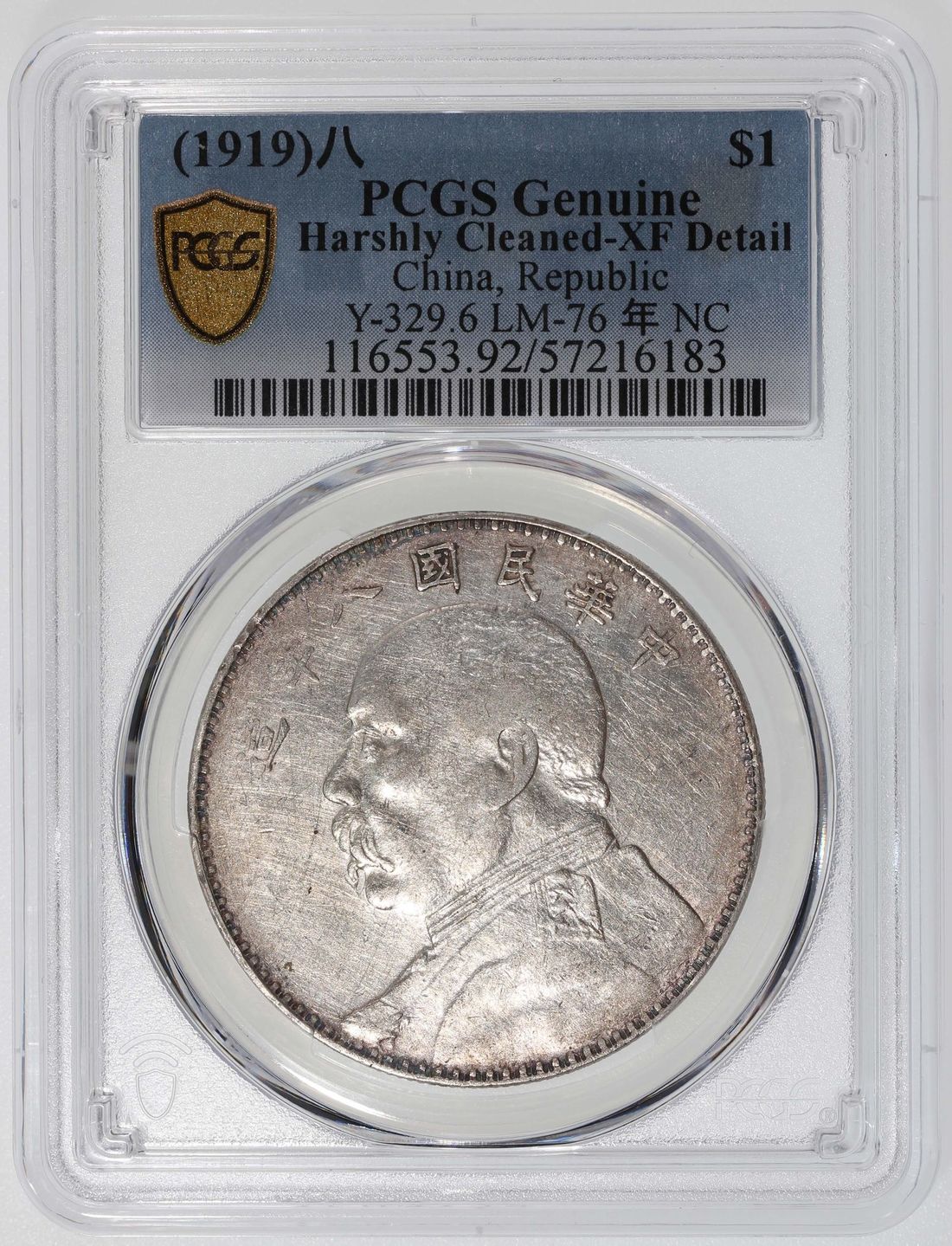 China, Republic, [PCGS XF Detail] silver dollar, Year 8 (1919), 'Yuan Shih Kai' variety with hooked wreath at left on reverse, (LM-76, KM-Y-329.6), Harshly Cleaned, Cert. #57216183