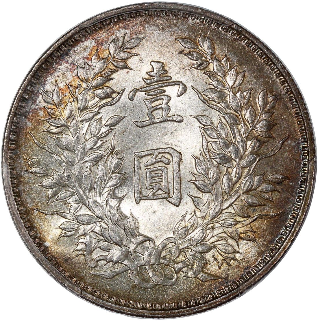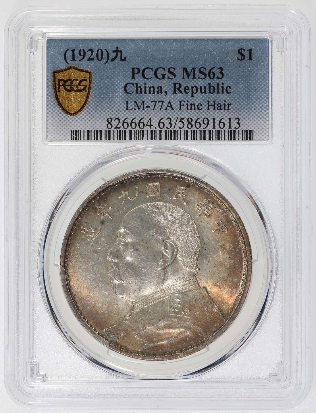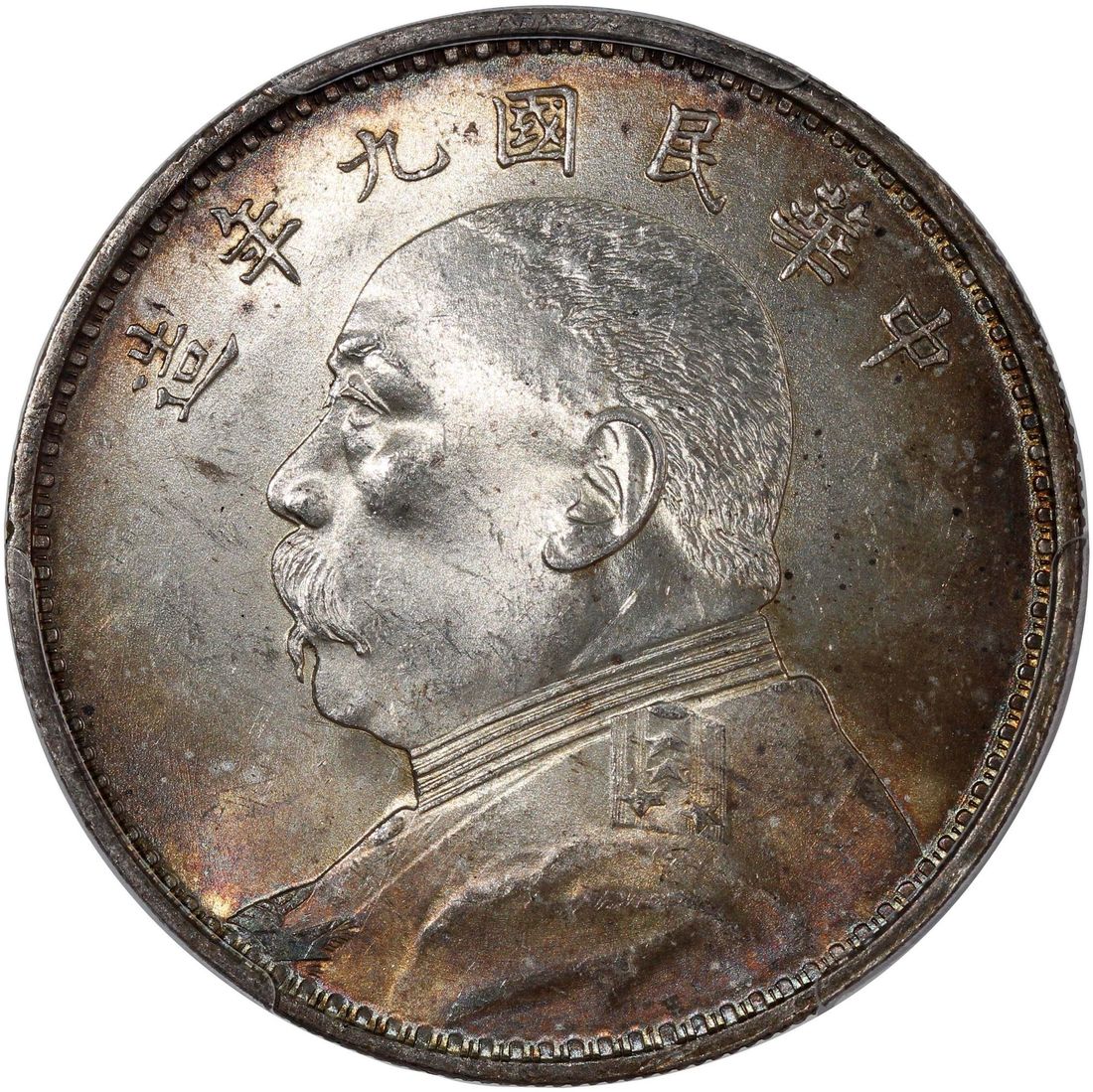 China, Republic, [PCGS MS63] silver dollar, Year 9 (1920), Fine Hair variety, 'Yuan Shih Kai' (LM-77A), Cert. #58691613, toned in a spectrum of dreamy colours. Popular variety
