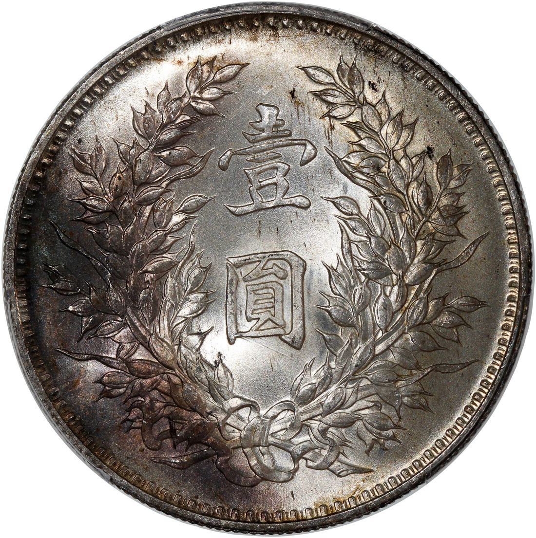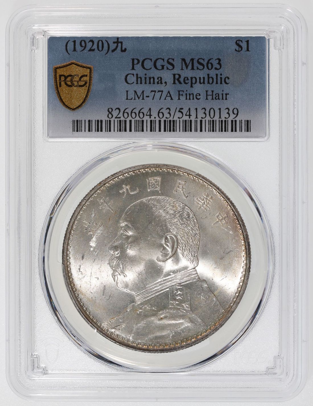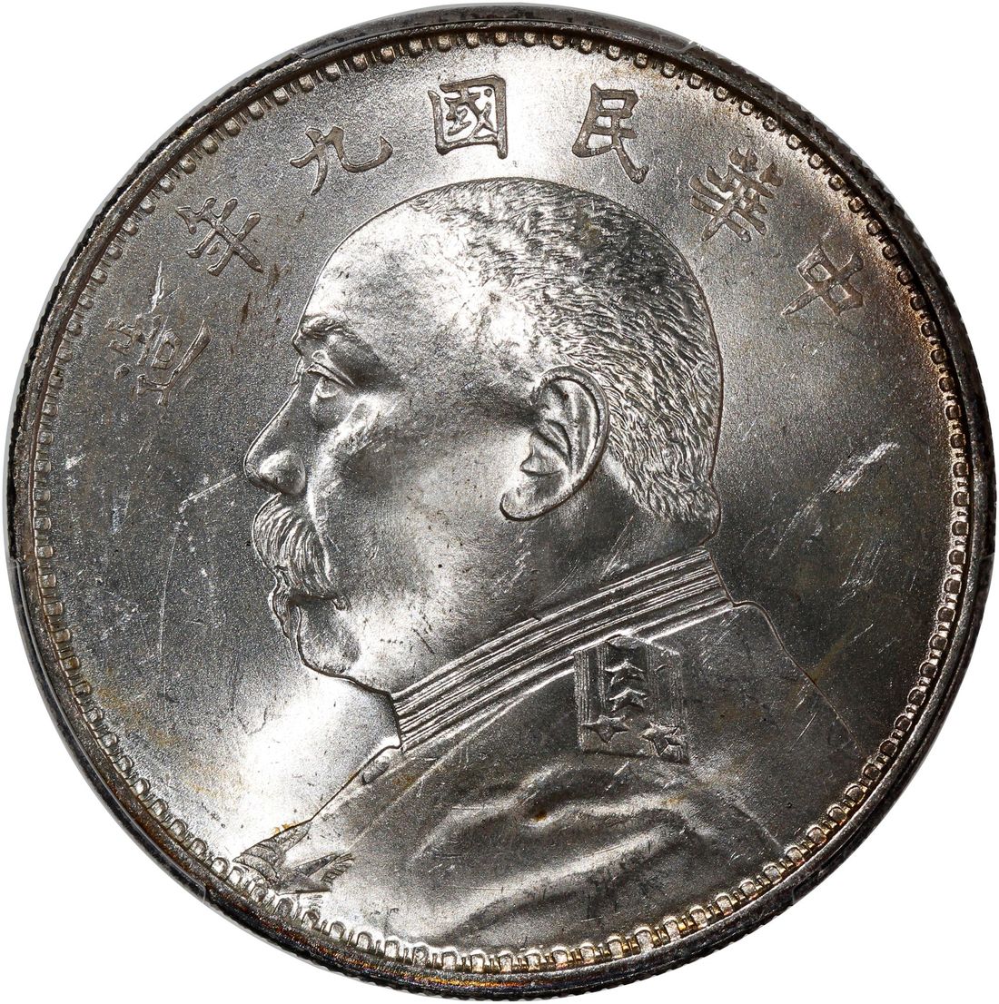 China, Republic, [PCGS MS63] silver dollar, Year (1920), 'Yuan Shih Kai' fine hair variant, (LM-77A), with mint luster, some dark blue toning at left on reverse. Cert.# 54130139