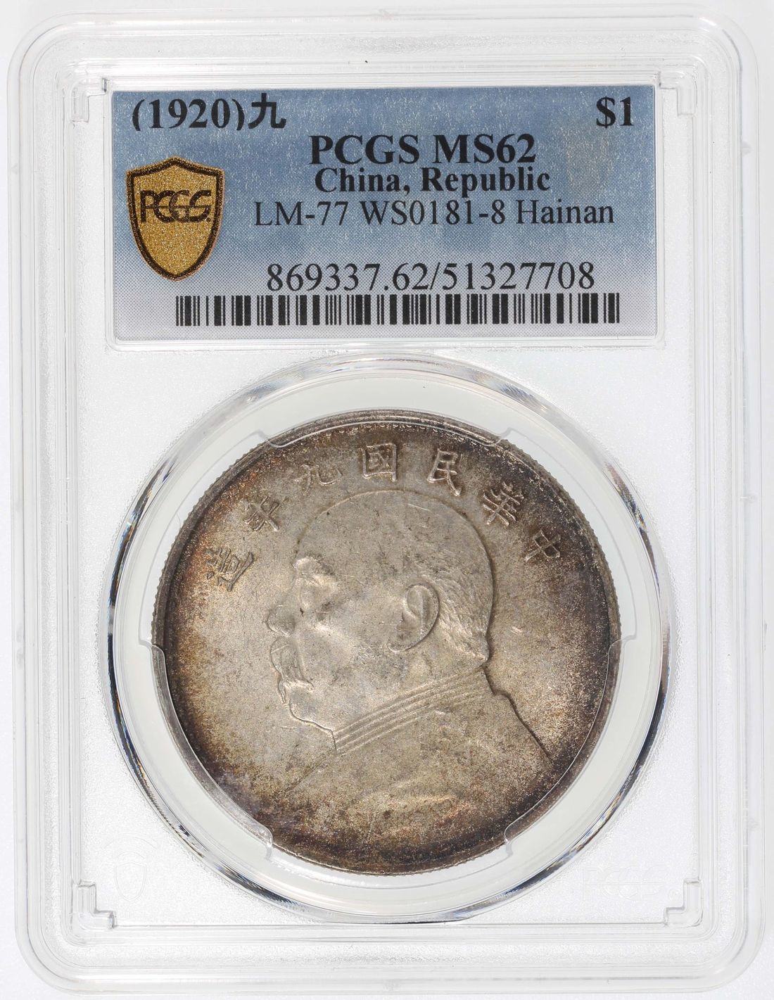 China, Republic, [PCGS MS62] silver dollar, Year 9 (1920), Hainan issue, 'Yuan Shih Kai' (LM-77, WS0181-8), Cert. #51327708