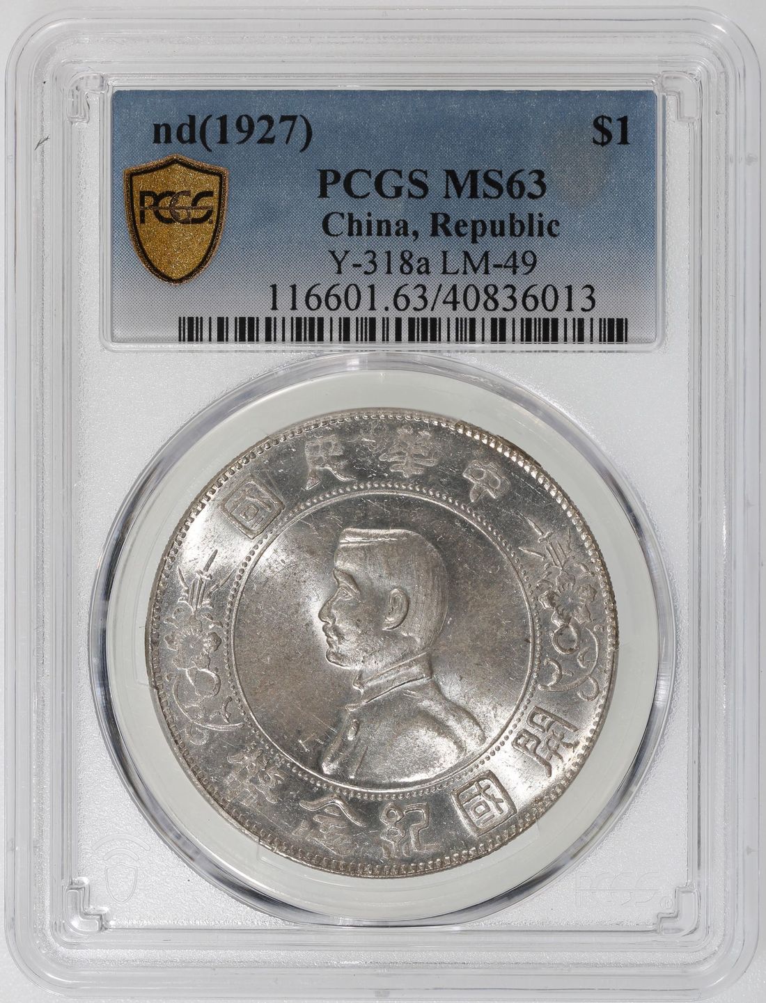 China, Republic, [PCGS MS63] silver dollar, ND (1927), Memento, Chinese character 'Kai' with closing stroke variant, LM-49, with mint luster, rare high grade for this type. Cert.# 40836013
