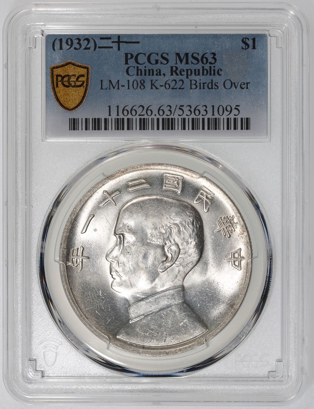 China, Republic, [PCGS MS63] silver dollar, Year 21 (1932), 'Three Birds over Junk,' (LM-108), brilliant mint luster. An always popular type. #53631095