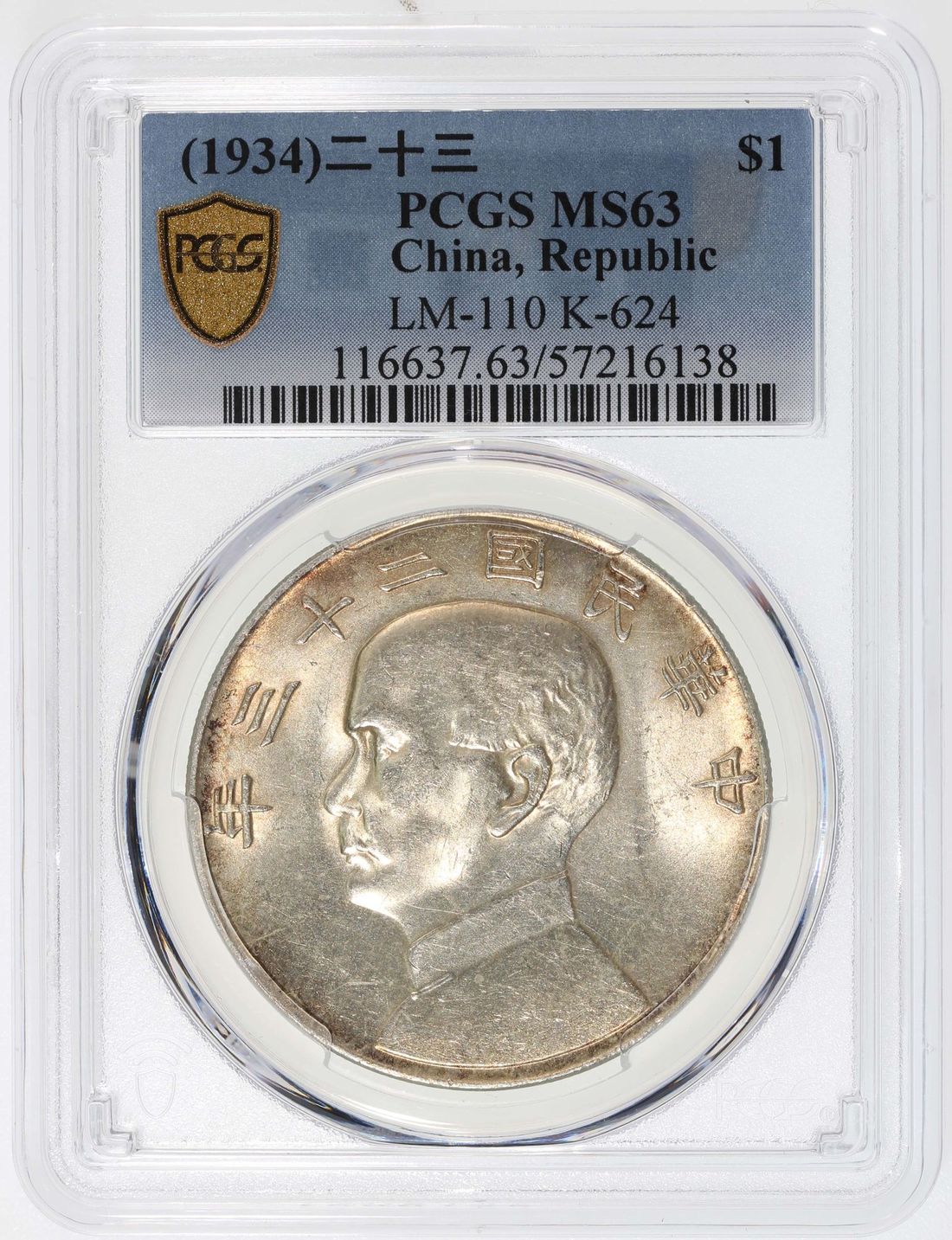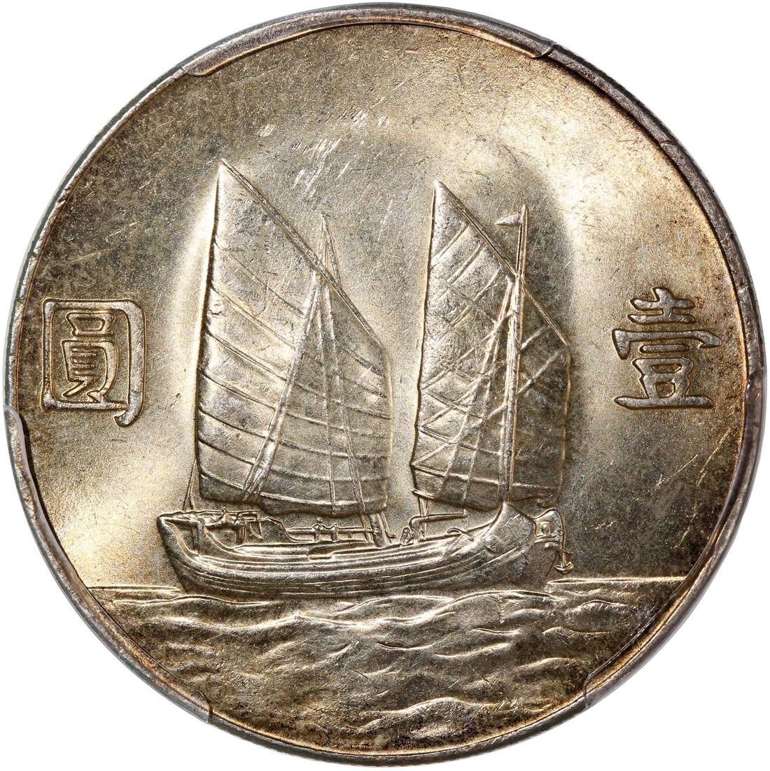 China, Republic, [PCGS MS63] silver dollar, Year 23 (1934), 'Junk', original thin rimmed type, (LM-110, K-624), Cert. #57216138, champagne toning on both sides