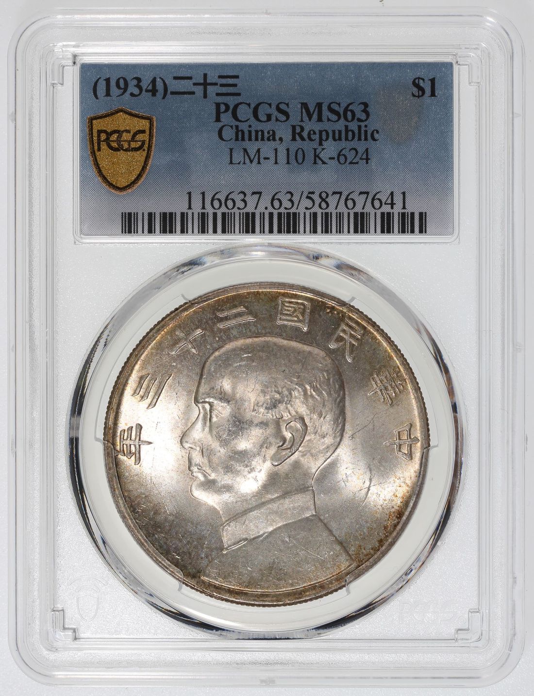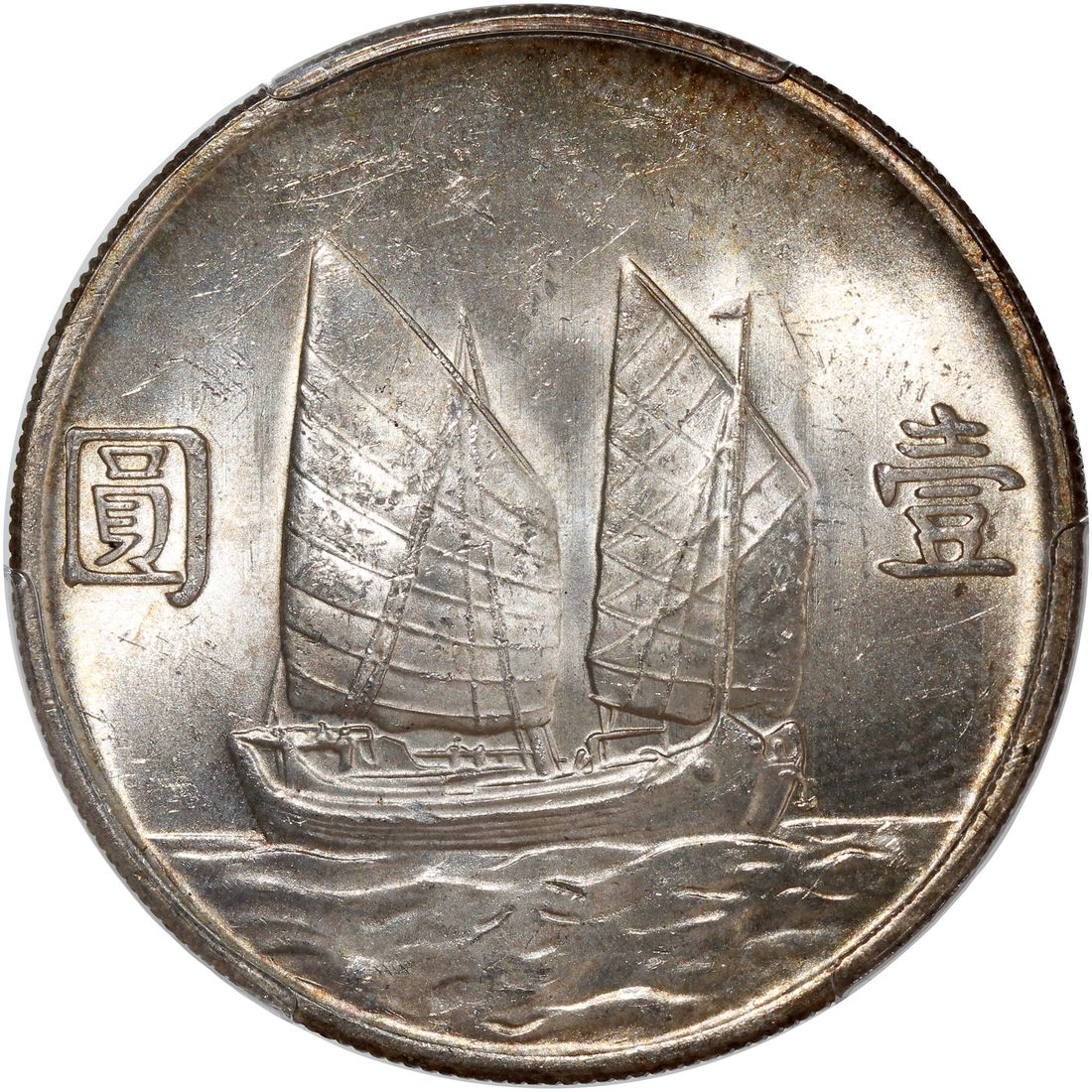 China, Republic, [PCGS MS63] silver dollar, Year 23 (1934), 'Junk', (LM-110), with golden rim toning. Cert.# 58767641