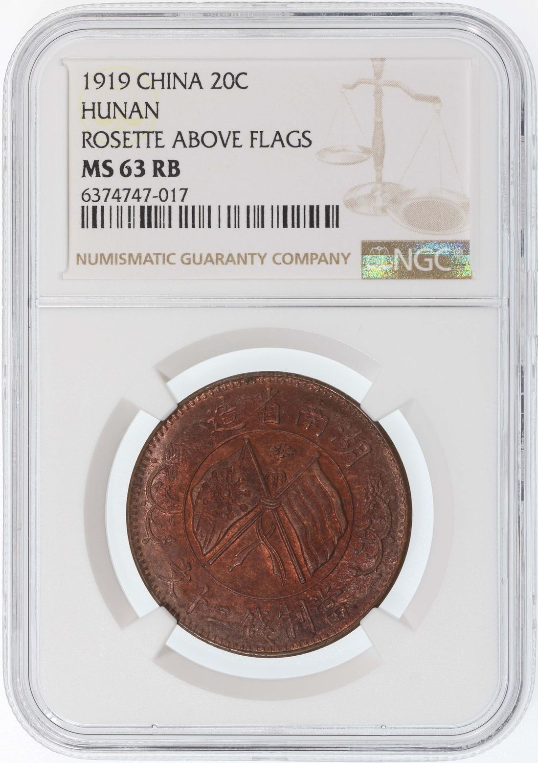 China, Republic, Hunan Province, [NGC MS63RB] copper 20 cash, 1919, (KM-Y-400), #6374747-017
