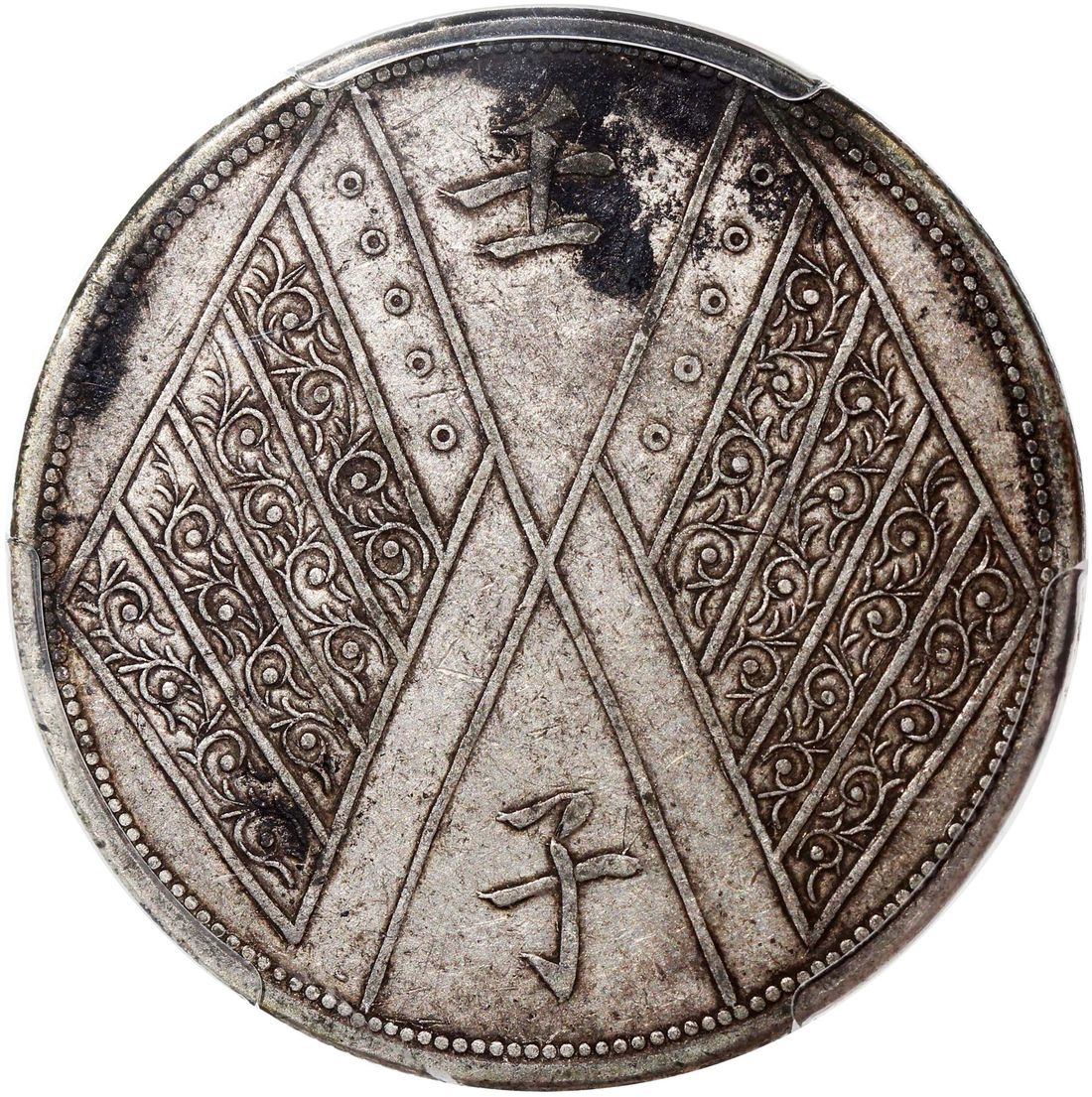 China, Republic, Sinkiang Province, [PCGS XF Detail] silver sar, Renzi year (1912), four arabesque stripes variety, (LM-833, KM-Y-42a), Environmental Damage, Cert. #57540315, still a respectable example for this difficult type