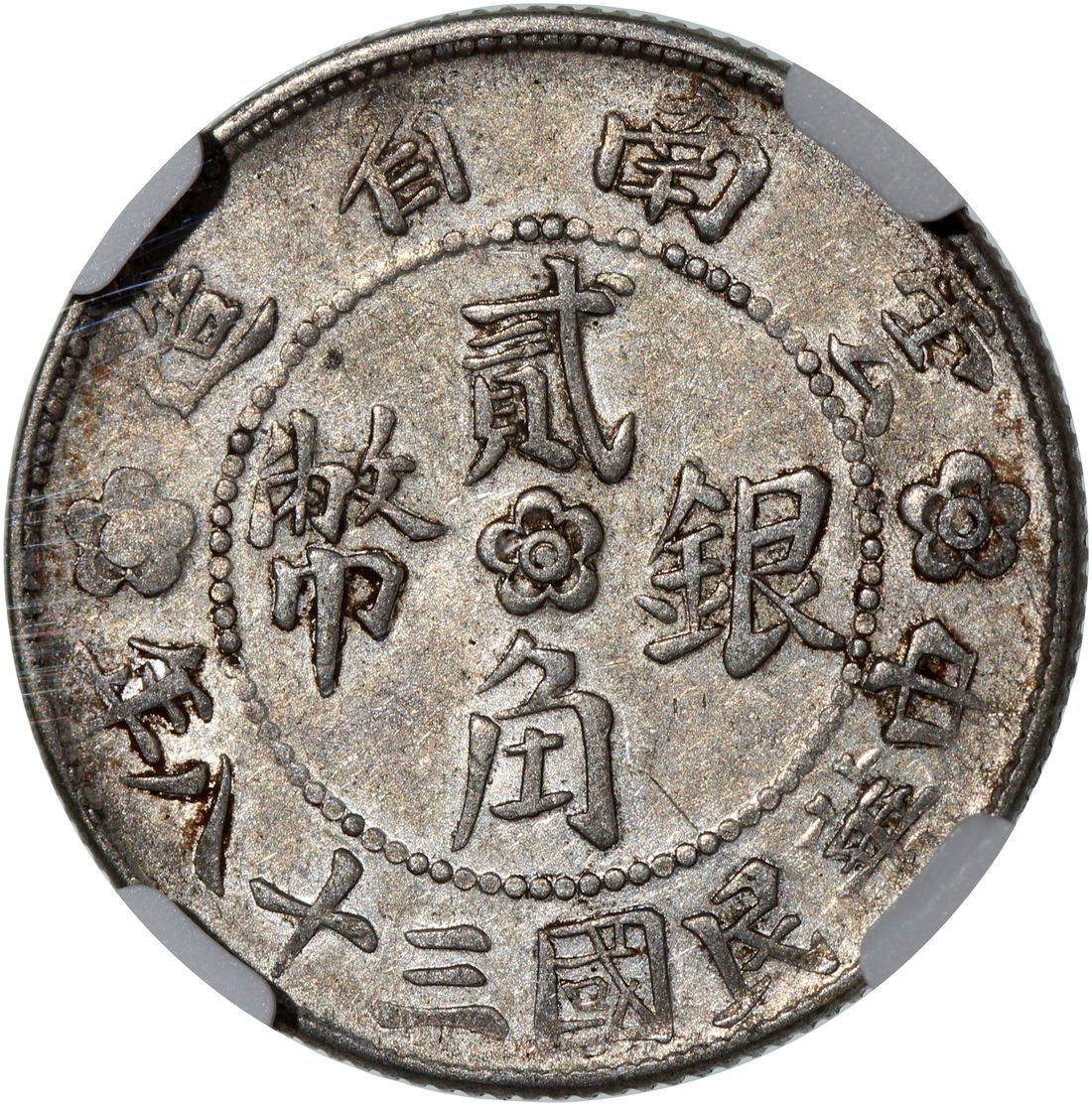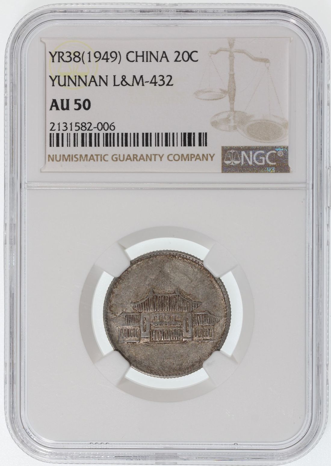 China, Republic, Yunnan Province, [NGC AU50] silver 20 cents, Year 38(1949), City Hall, (LM-432), Cert.# 2131582-006