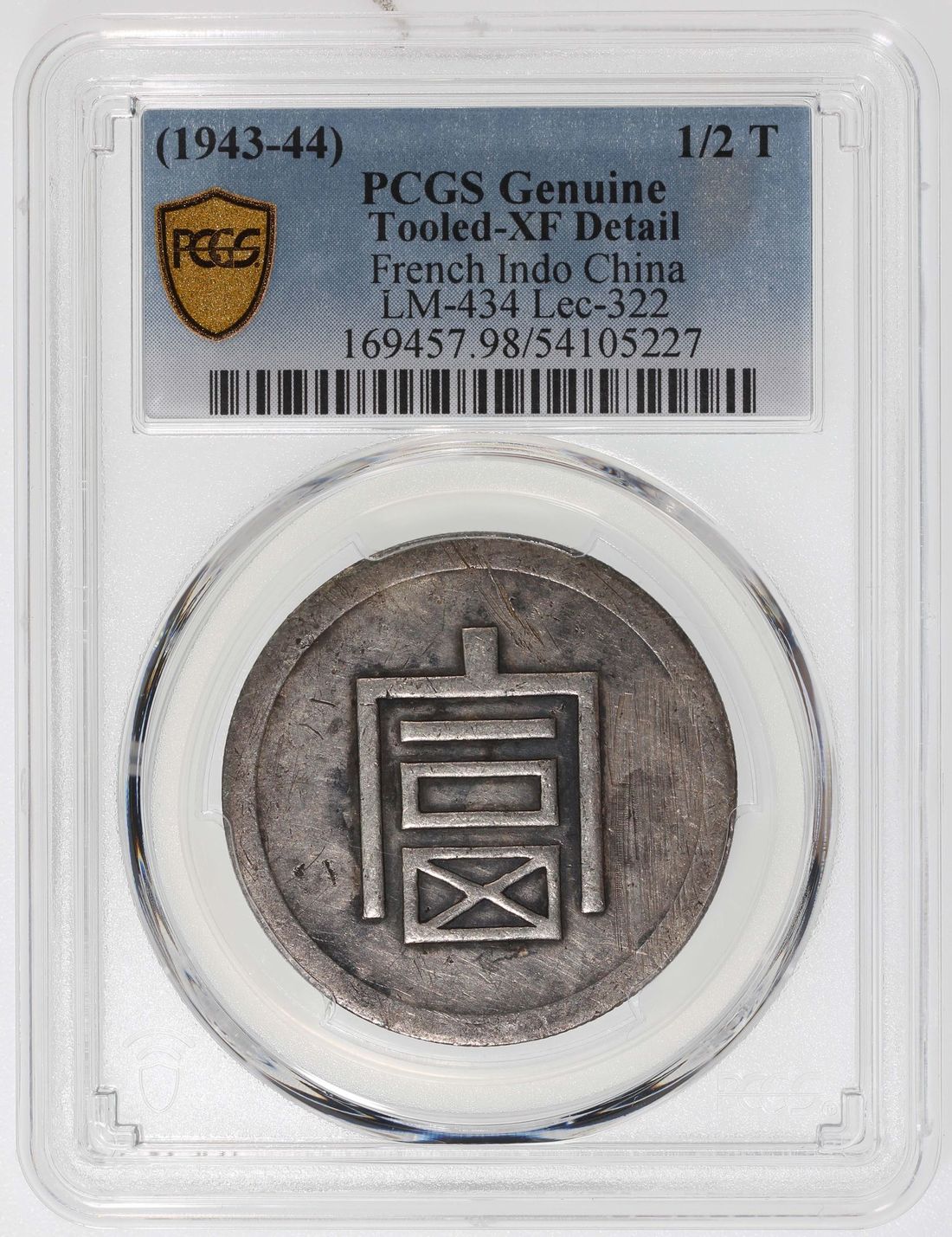 China, Republic, Yunnan Province / French Indo China, [PCGS XF Detail] silver ½ tael, ND (1943-44), Chinese character 'Fu' on obverse, 'Ban Liang Zheng Yin' on reverse, (LM-434, Lec-322), struck for French Indo-China for the opium trade or army forces, Tooled, Cert. #54105227