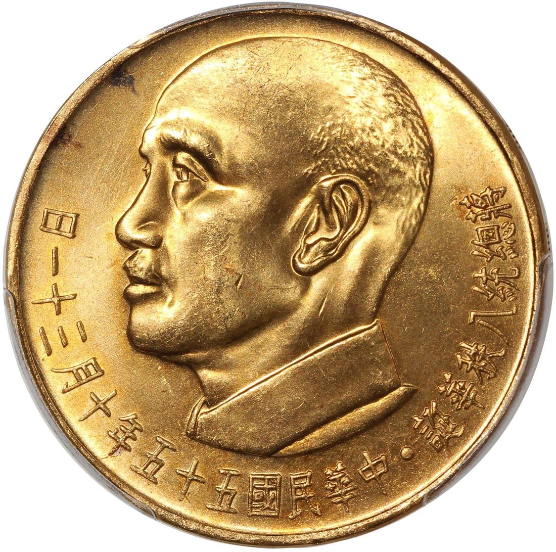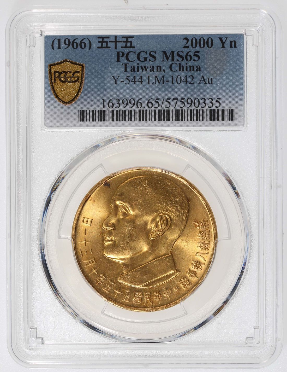 China, Taiwan, [PCGS MS65] gold 2000 yuan, Year 55 (1966), 80th Birthday of Chiang Kai Shek commemorative issue, (Y-544, LM-1042), Cert. #57590335, a gorgeous Gem issue with satiny luster on both sides