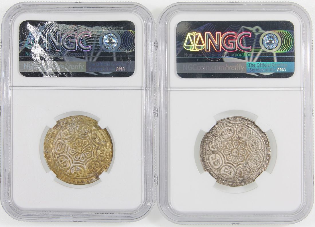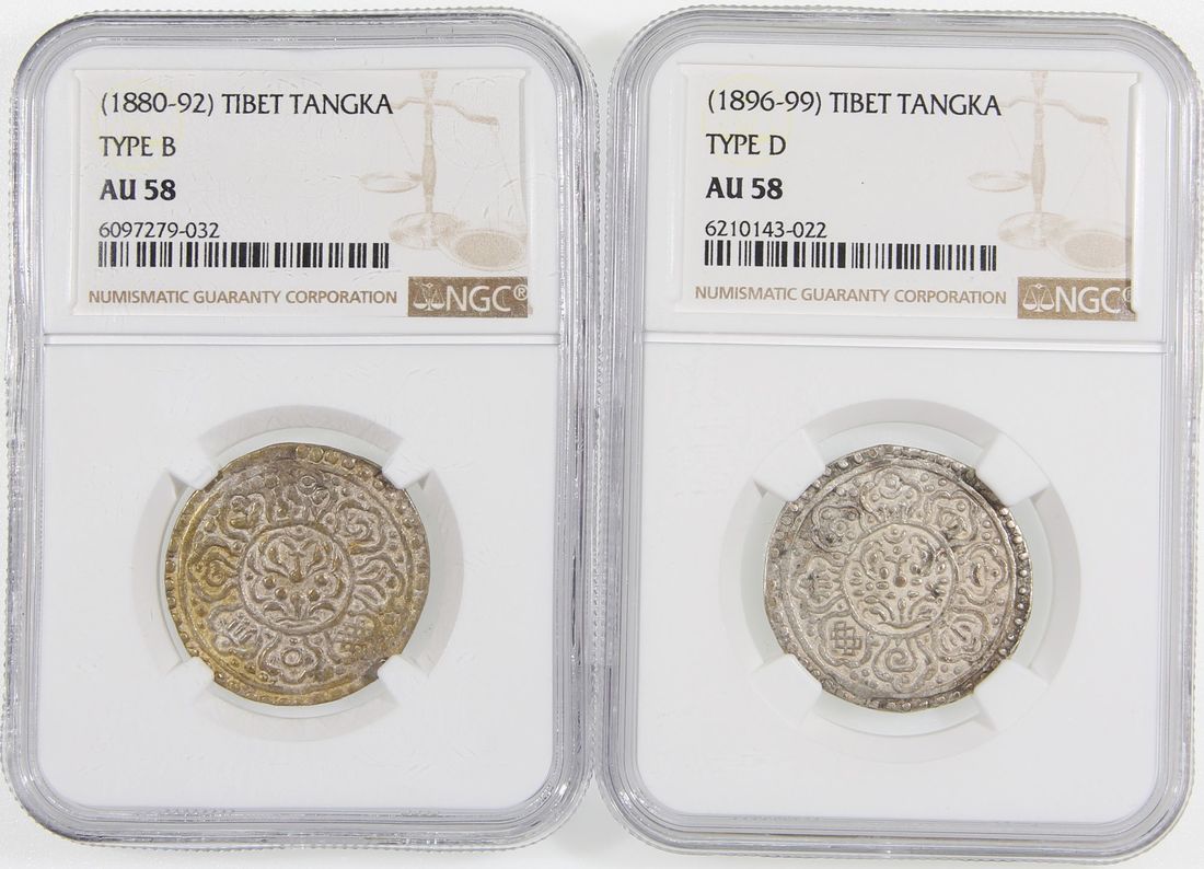 China, Tibet, a pair of silver tangka, ND(1880-92) and (1896-99), both graded NGC AU58.(2)