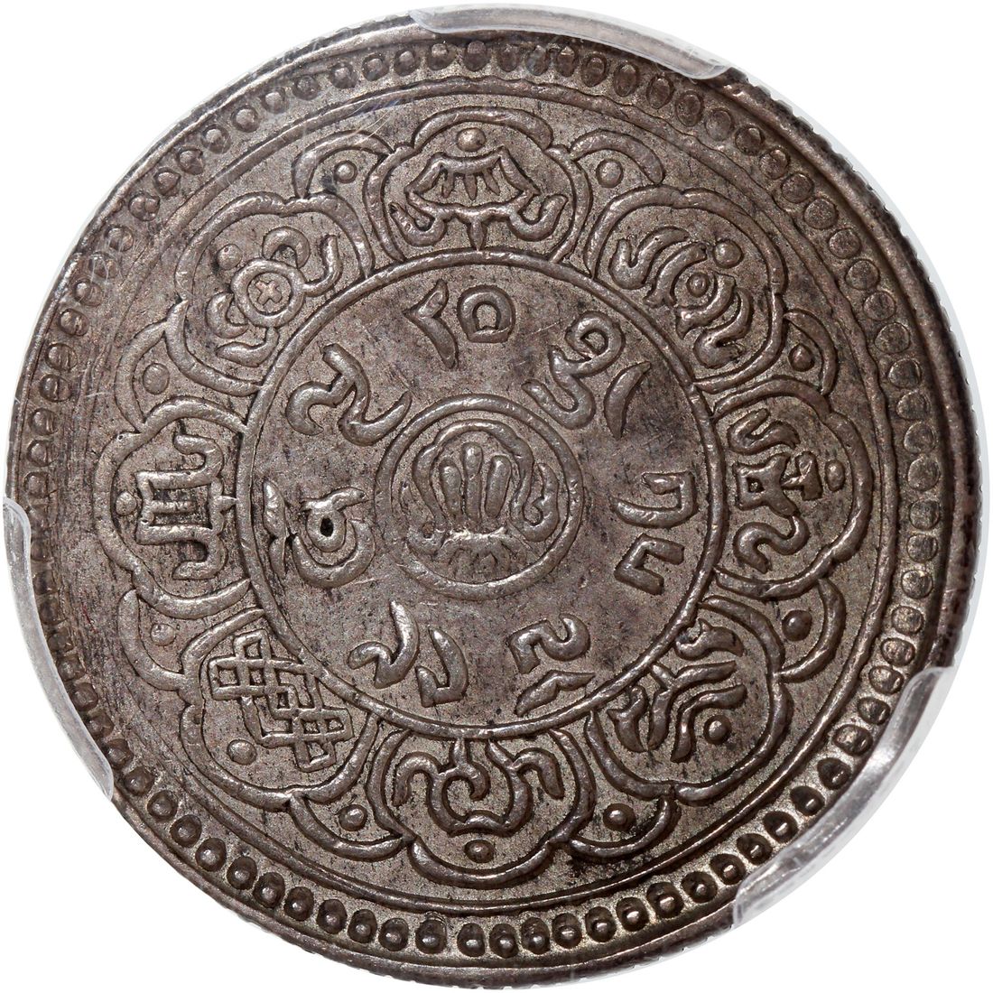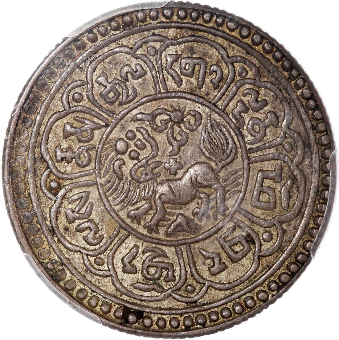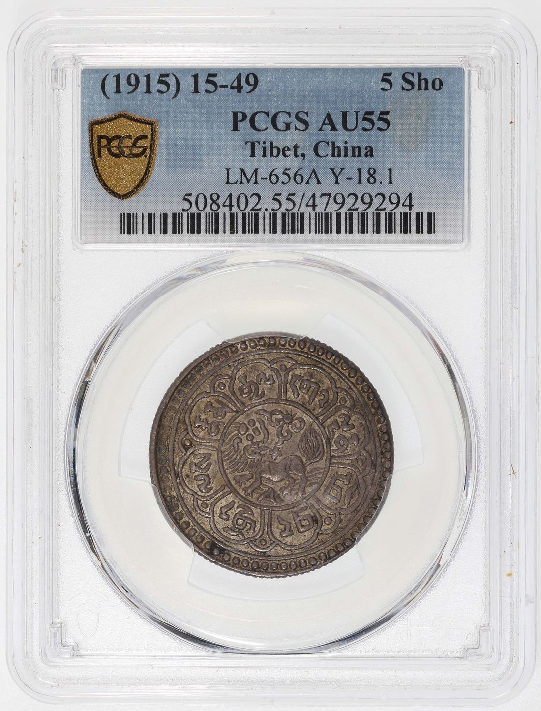 China, Tibet, [PCGS AU55] silver 5 sho, BE 15-49 (1915), 'lion looking upwards' type, (LM-656A, Y-18.1),