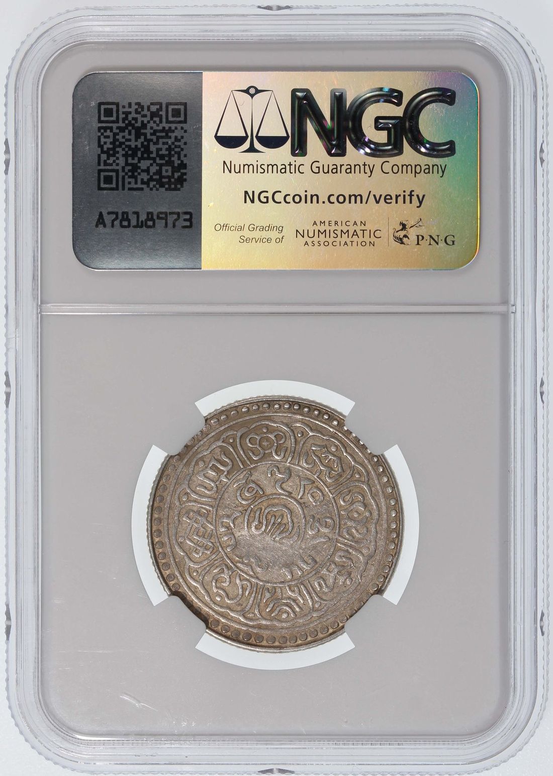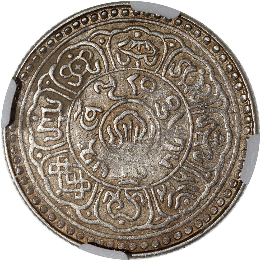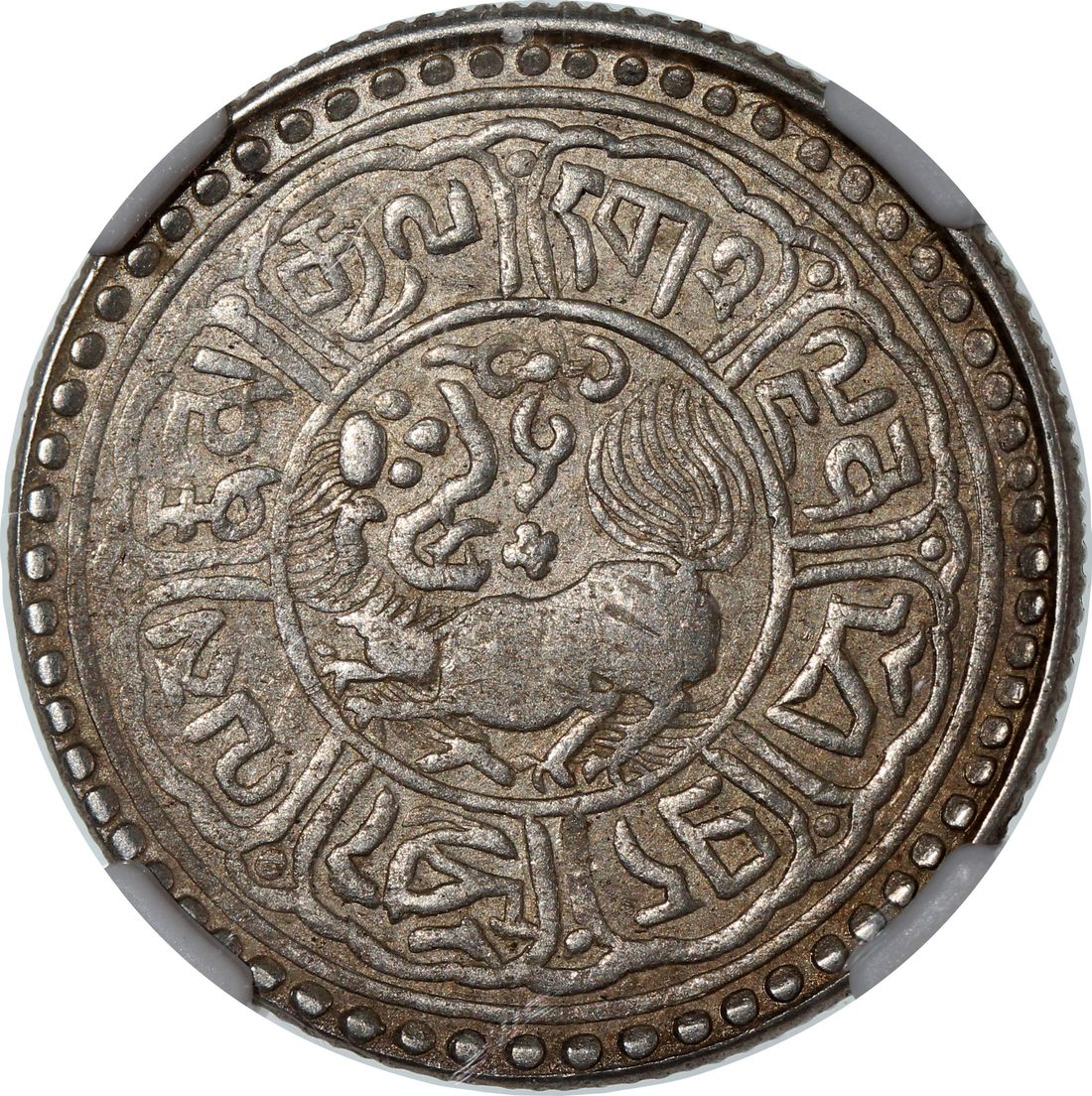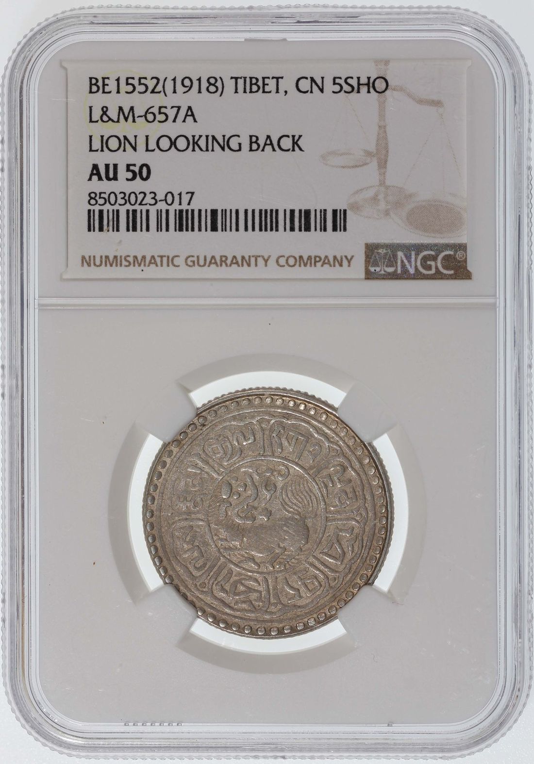 China, Tibet, [NGC AU50] 5 sho, BE1552(1918), variety with 'lion looking back', (LM-657A),