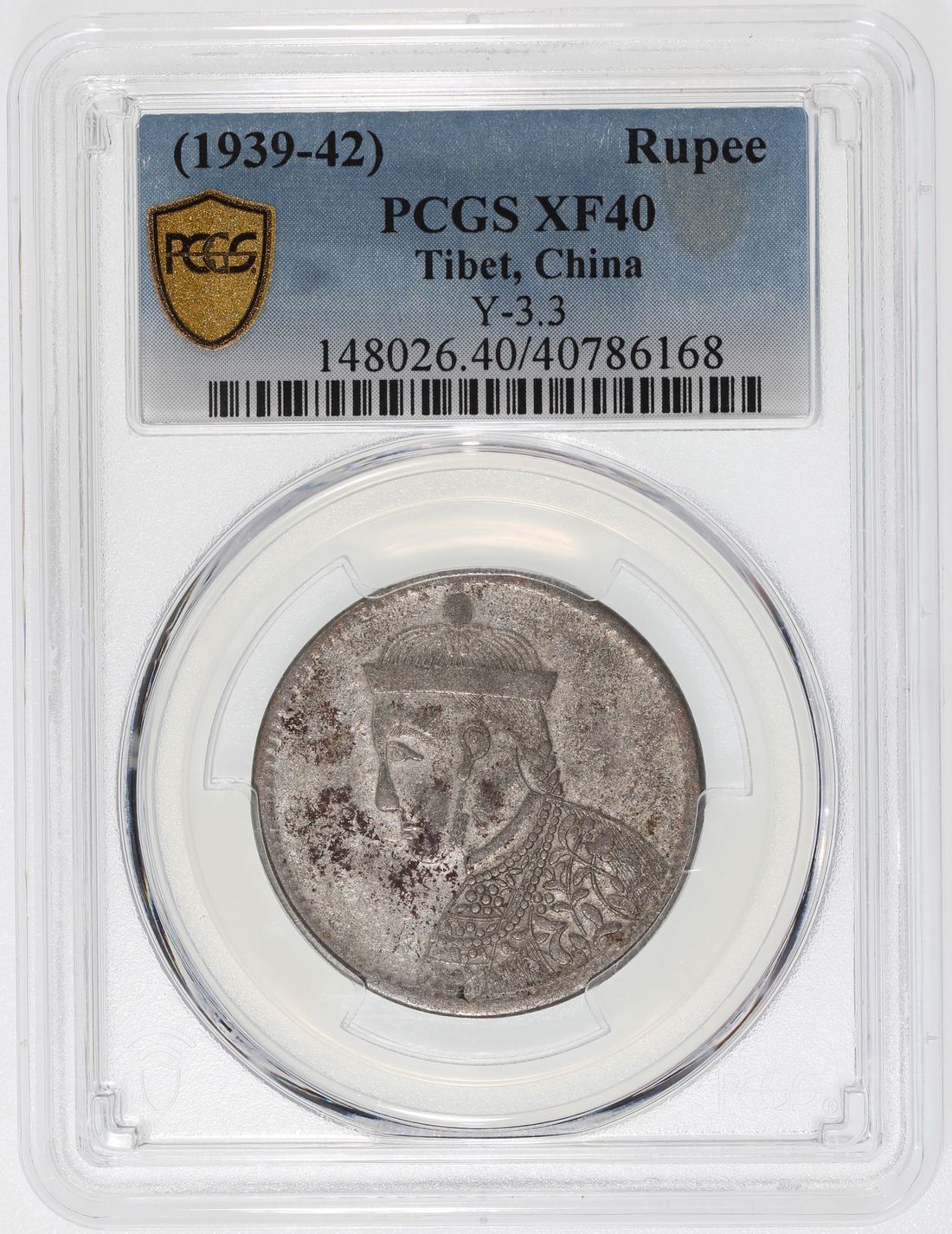 China, Tibet, [PCGS XF40] silver 1 rupee, ND(1939-42), vertical rosette with collar, Y-3.3, Cert.# 40786168