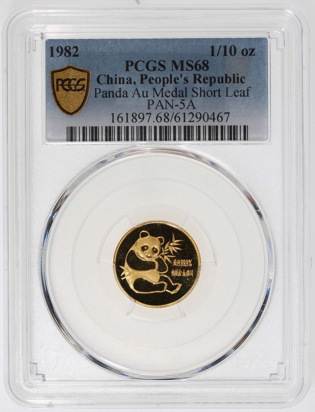 People's Republic of China, [PCGS MS68] gold Panda 1/10 oz coin, 1982, first year of the Panda coins, 99.9% pure gold, (PAN-5A), Cert. #61290467