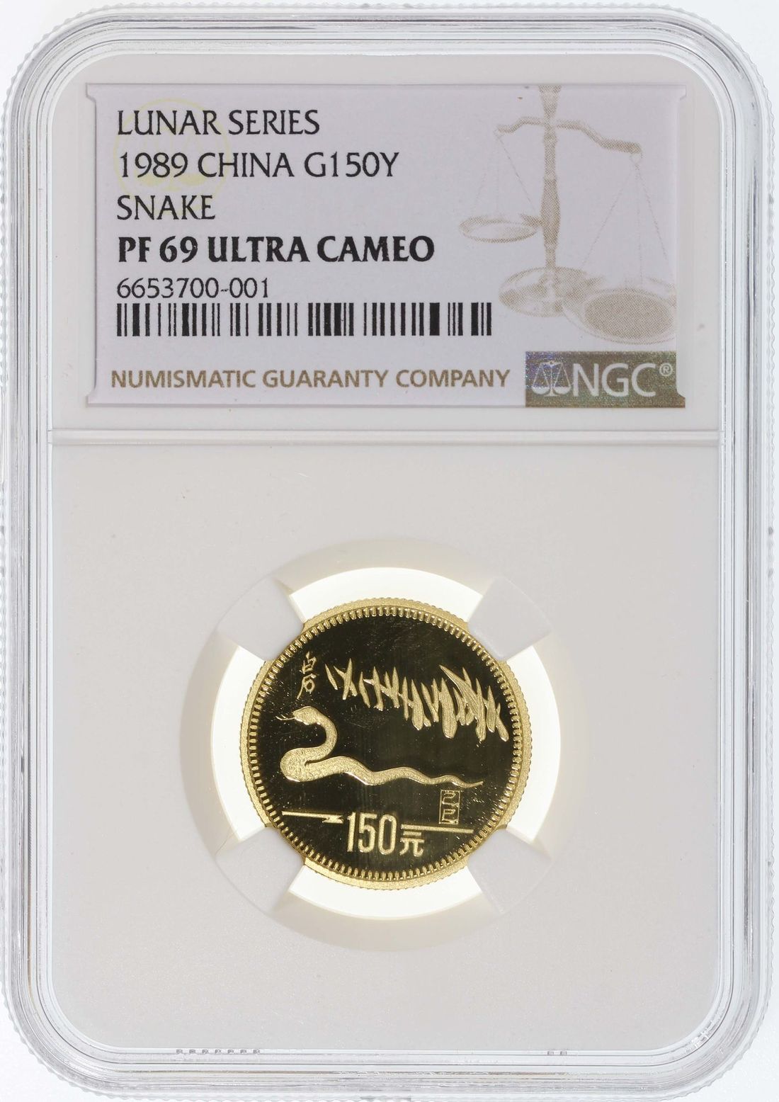 People's Republic of China, [NGC PF69 UC] gold proof 150 yuan, 1989, "Year of Snake", 8g, mintage 7,500,