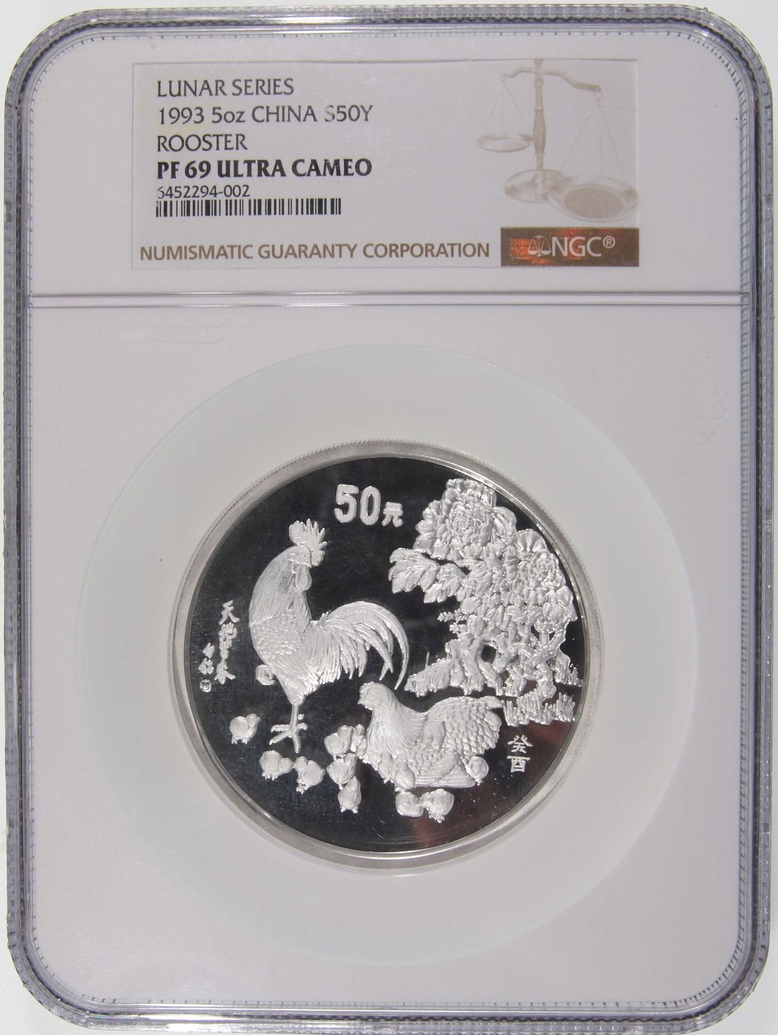 People's Republic of China, [NGC PF69 UC] silver proof 50 yuan, 1993, 'Year of Rooster', 5oz, mintage 1003,