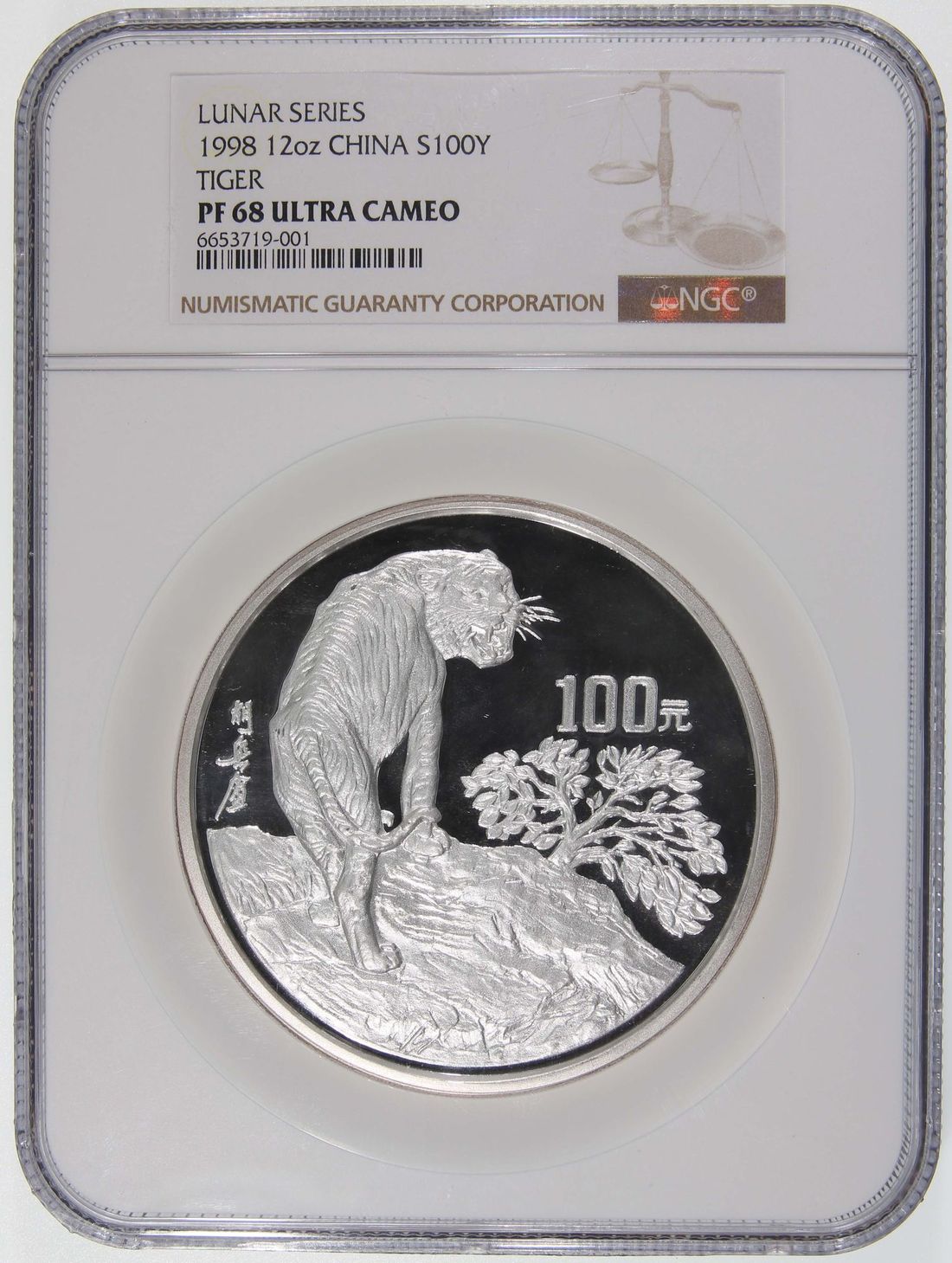 People's Republic of China, [NGC PF68 UC] silver proof 100 yuan, 1998, 'Year of Tiger', 12oz, mintage 500,