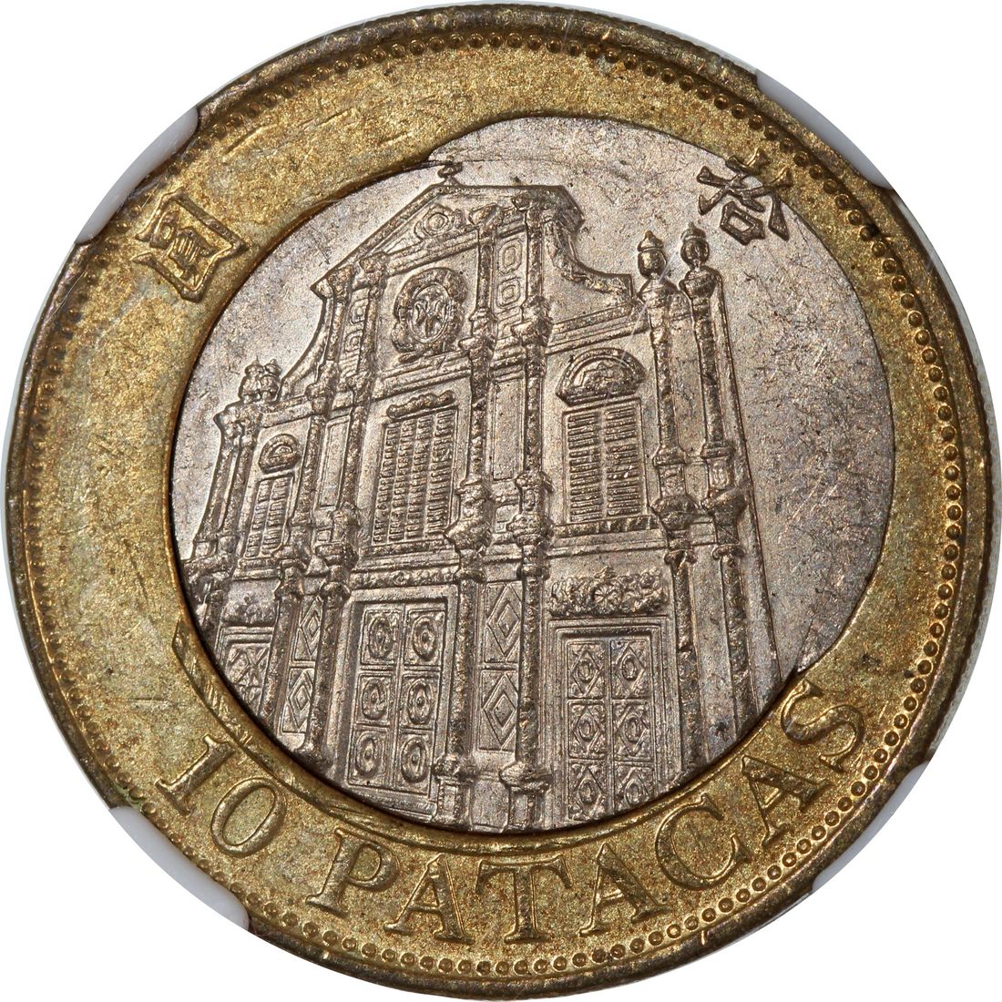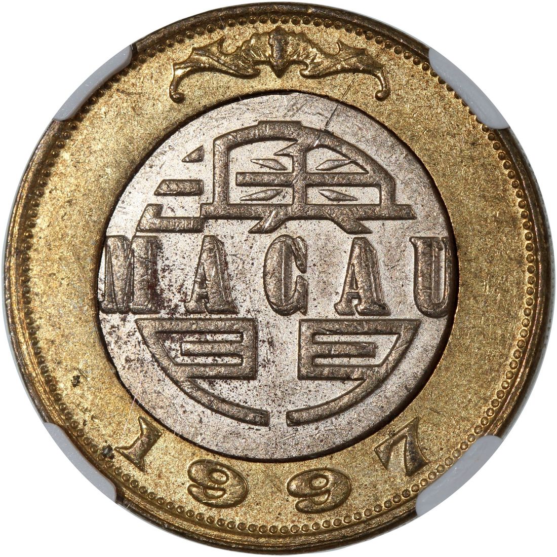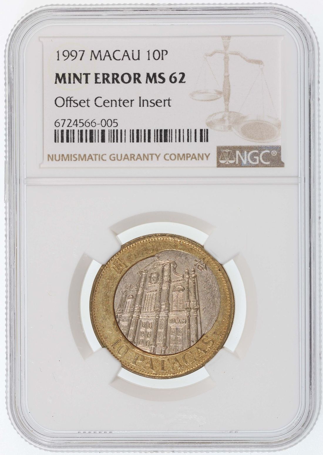Macau, [NGC MS62] MINT ERROR copper nickel 10 patacas, 1997, off centre insert, Cert. 6724566-005