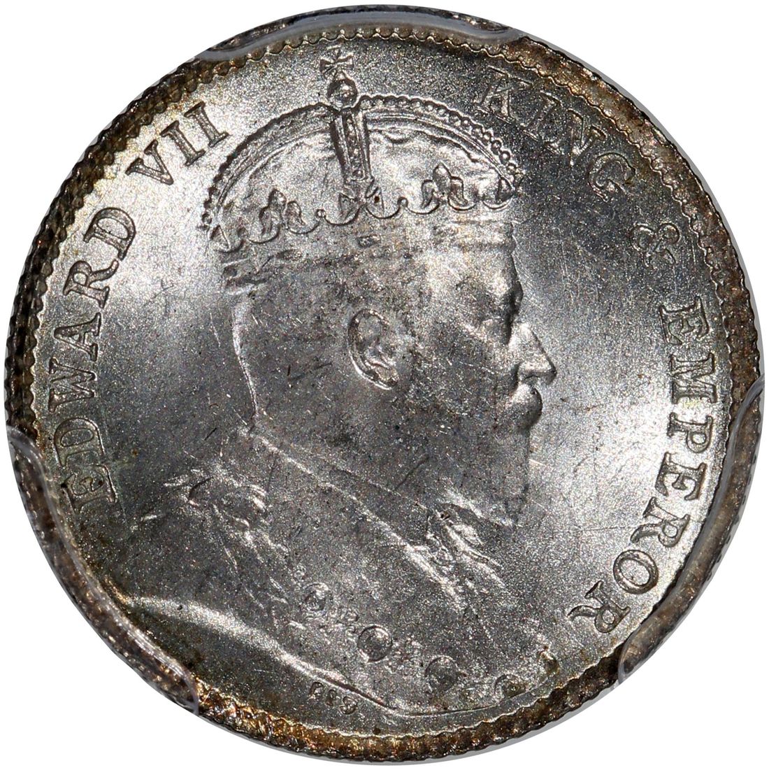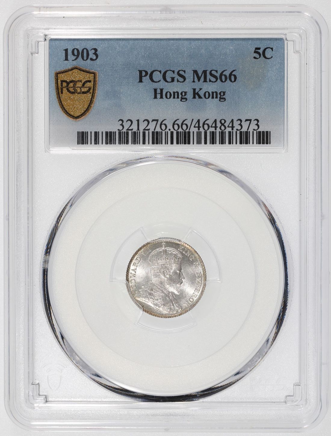 Hong Kong, [PCGS MS66] silver 5 cents, 1903, Edward VII on obverse, (KM-12), Cert. #46484373, only 7 finer examples in the PCGS population report as of cataloguing