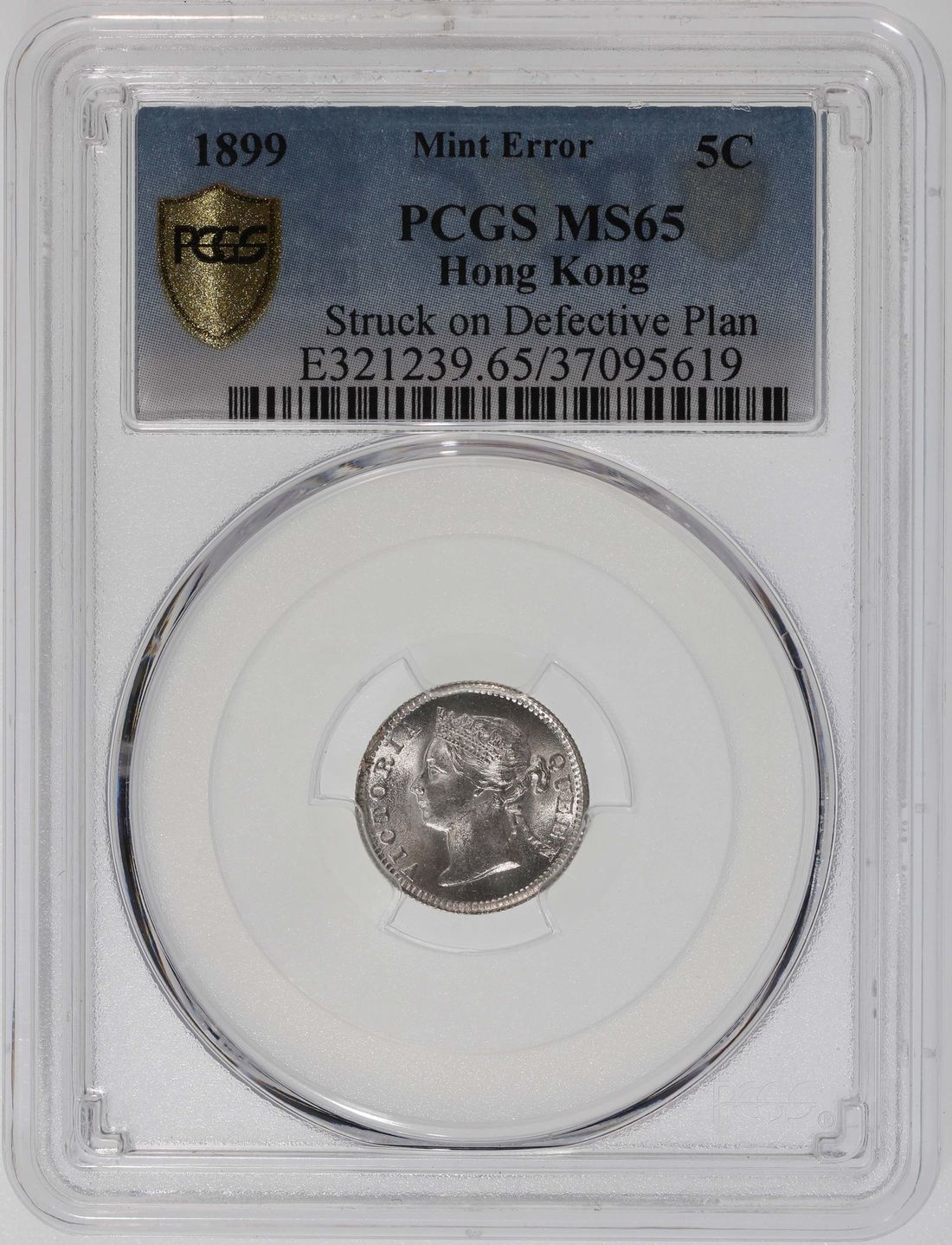 Hong Kong, Victoria, [PCGS MS65] MINT ERROR 5 cents, 1899, struck on defective planchet, #37095619. Early Victorian errors very rare, let alone in such high grade