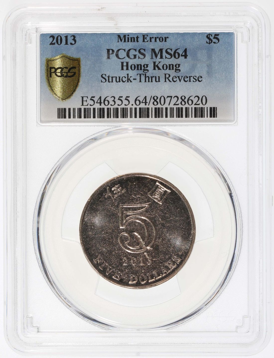 Hong Kong, [PCGS MS64] MINT ERROR $5, 2013, struck through reverse, #80728620