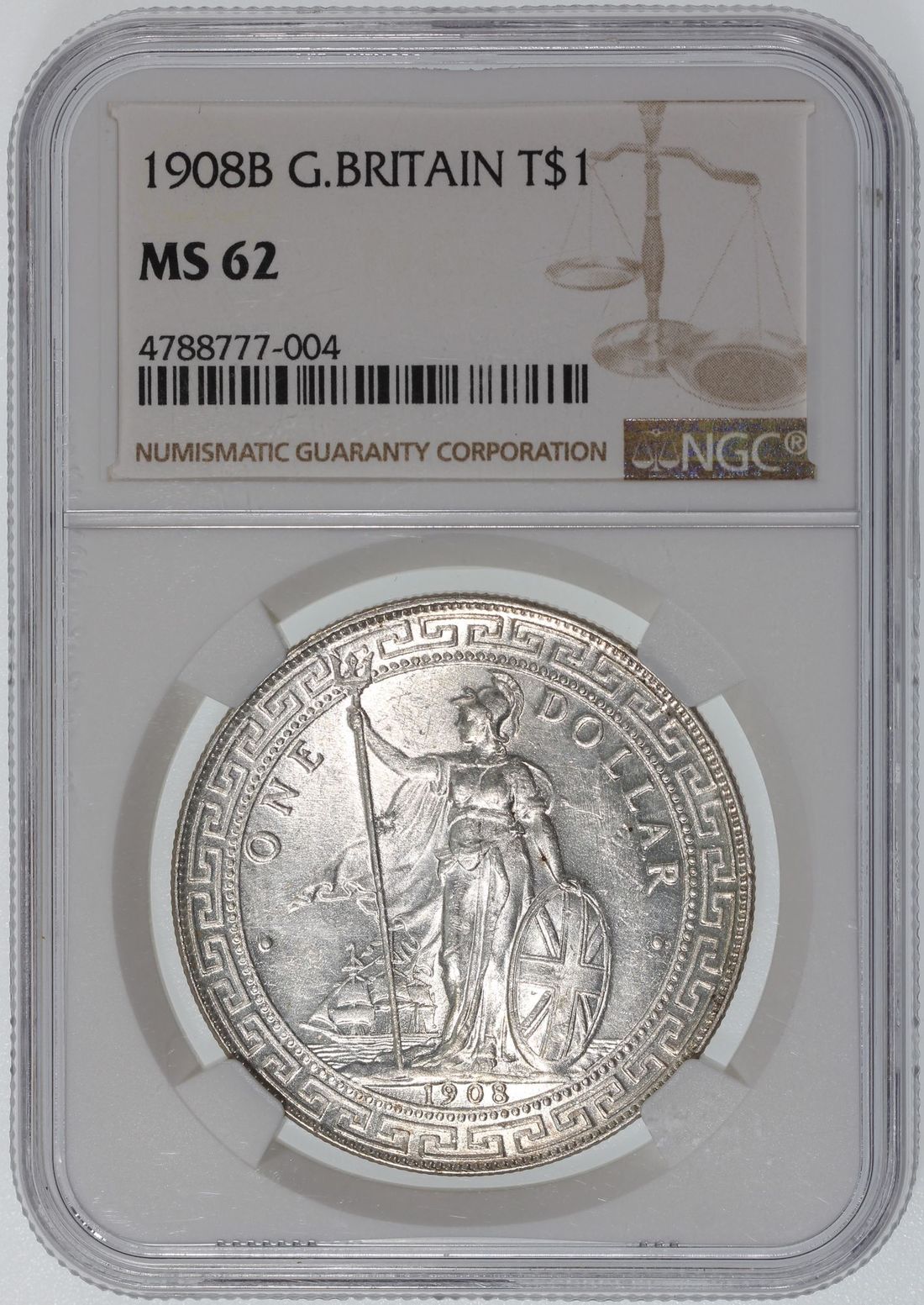 Great Britain, Trade Dollar [NGC MS62] 1908B, Cert.#4788777-004