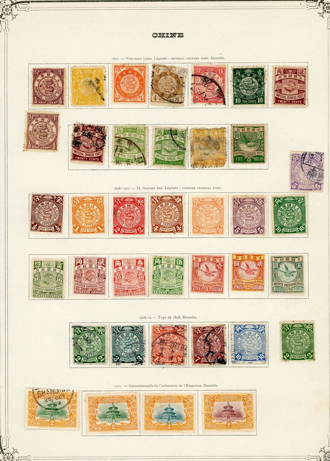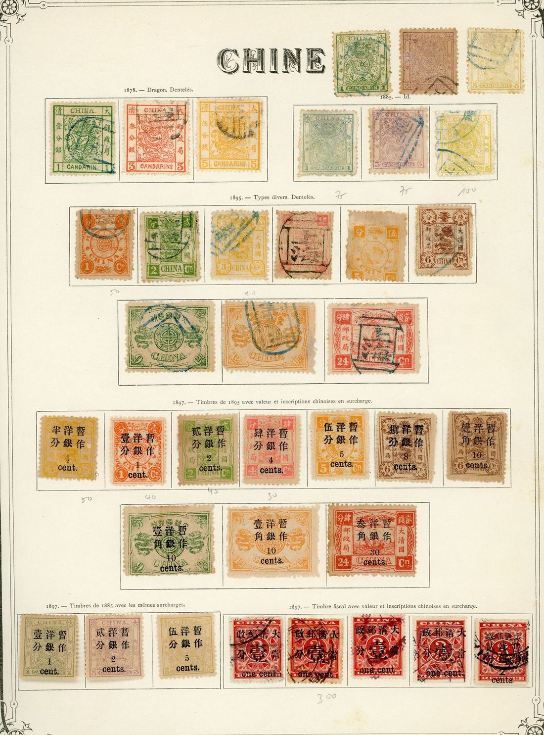 1878-1930s A nice group of Chinese unused and used stamp collection; Including 1878 used Large Dragon set of three, Small Dragon set of both Clean Cut Perf. and Rough Perf. 1894 Full set of nine in unused of 1st printing Empress Dowager Commemorative Issue, 1897 full set of unused Empress Dowager Commemorative with Small Figures, 1897 Unused set of Small Dragon Issue Sucharged with Small Figures. 1897 Red Revenue Surcharged eith large Figures 1c. on 3c.x 4, 2c. on 3c., 4c.on 3c. (all in used), 1909 unused set of Hsuan Tung 1st Year Commemorative Issue. 1939 The 150th Anniv. of U.S.A. set of four in block of four, 1941 The Thrift Movement Issue Miniature, Dr.Sun overprinted and Surcharge issues., and some more others. Fine to toning, please preview.